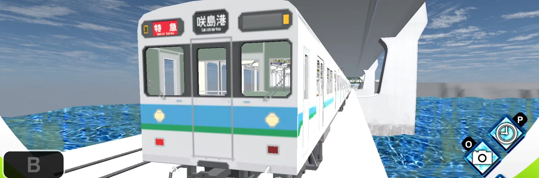 ②就職活動が終わり、開発に手を付けたのですが、軽量化が必要になるため、軽量化案として路線は一周して楽しめる形へと変更し、誰でも楽しめるフリードライブ運転のゲームとなりました。