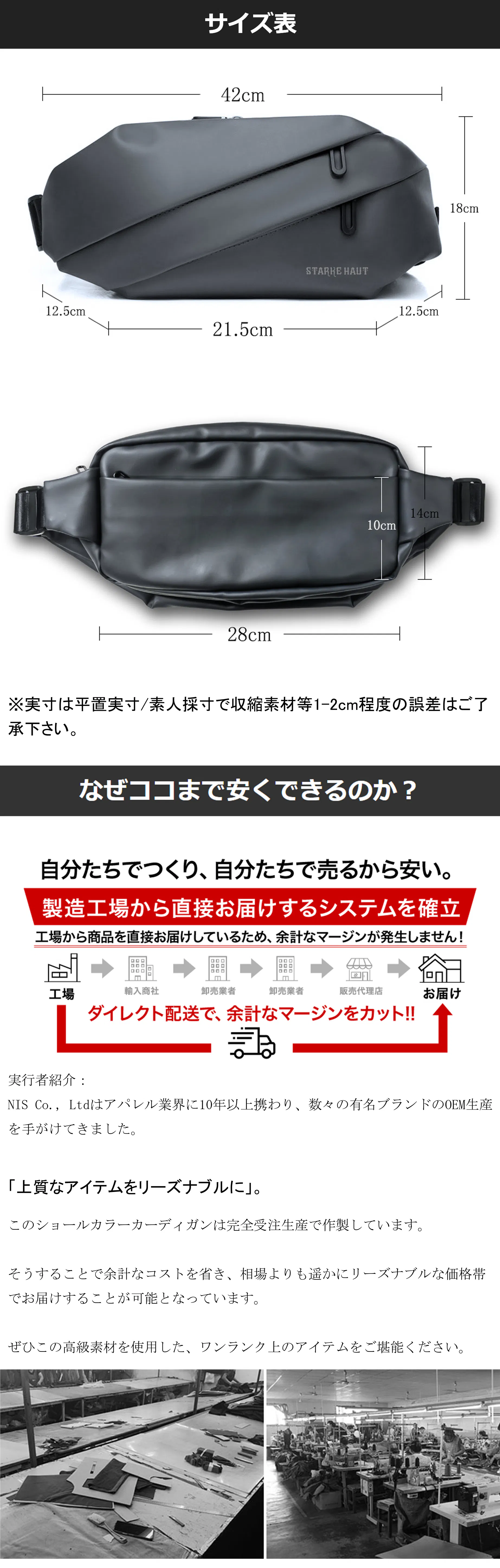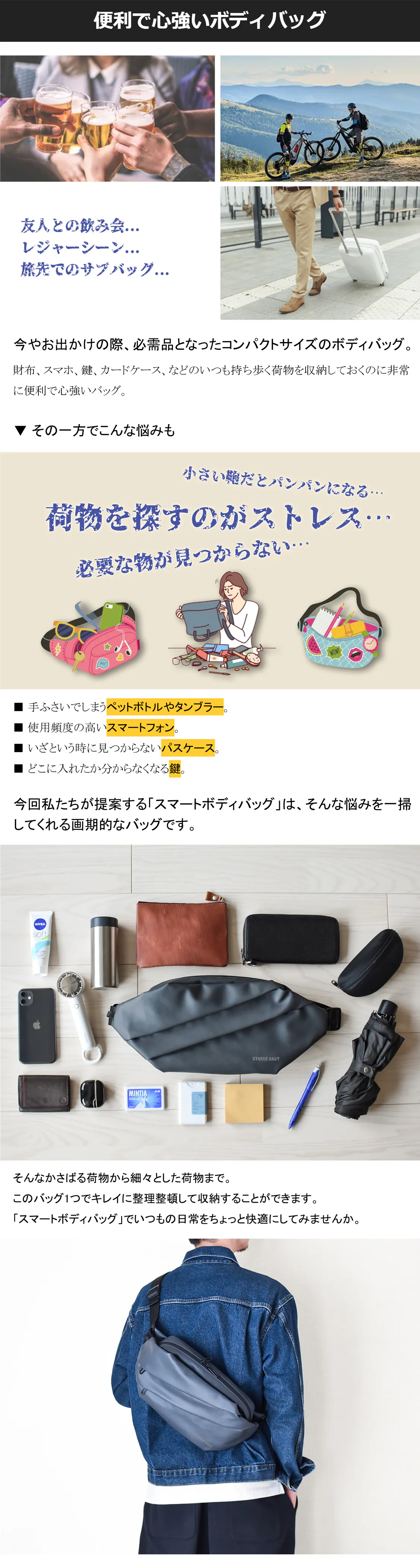 毎日をちょっとだけ軽くするミニマルな暮らしを応援するバッグ ※生産ロットにより生地の色合い,デザインが若干変更となる場合がございます。 ※お客様都合によるサイズ交換の際、送料はお客様にご負担いただきます。予めご了承ください。 ※初期不良の場合の交換対応につきましては、到着後3日以内にご連絡をいただけた場合は、弊社にて無償交換対応をさせていただくというものです。 ※ご注文状況、使用部材の供給状況、製造工程上の都合等により出荷時期が遅れる場合があります。 ※購入後のサポーターさま都合によるキャンセルや返金はお受け出来ませんのでご了解ください。 ※ご連絡がなくお届け先が変更となる場合は、転送費用が別途必要となります。 ※万が一転居や受取拒否などでリターンをお受け取りされない場合は、配送費用をご請求させていただきます。 メーカーの所在地(日本) 製造国 (CHINA)