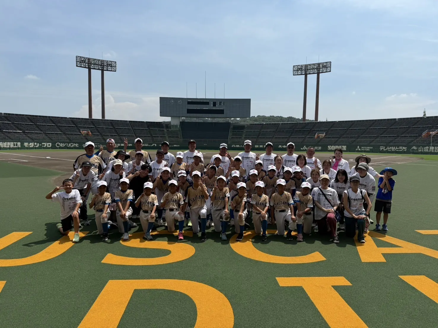 2025/08/20 00:118月18日憧れのマスカット球場で、準々決勝でした。お相手は神奈川県代表YAMAYURI。初回に8点も取られてしまいました。しかし、2回の裏から練習試合をしてくださった栃木スーパーガールズの子供たちとお父さんたちがたくさんの声援を応援席から一緒に送ってくださり、3回の表で、5点もかえすことができました。力及ばず、5-10の結果となり、ここで敗退となりました。昨年の埼玉県代表に並ぶベスト8、本当に立派な成績を残すことができました。アフターマッチファンクションがあり、涙をこらえながら参加し始めましたが、最後はYAMAYURIチームの選手ともうちとけ、楽しい時間を共有することができました。19日の帰りの新幹線で、神奈川県代表対千葉県代表の準決勝を見ていた子供たち。アフターマッチフアンクションでお友達になった神奈川県の選手を応援していました。ここまでたくさんのご支援、本当にありがとうございました。小学生最後の夏、素晴らしい経験をすることができました。応援してくださった皆様、本当に本当にありがとうございました。 もっと見る