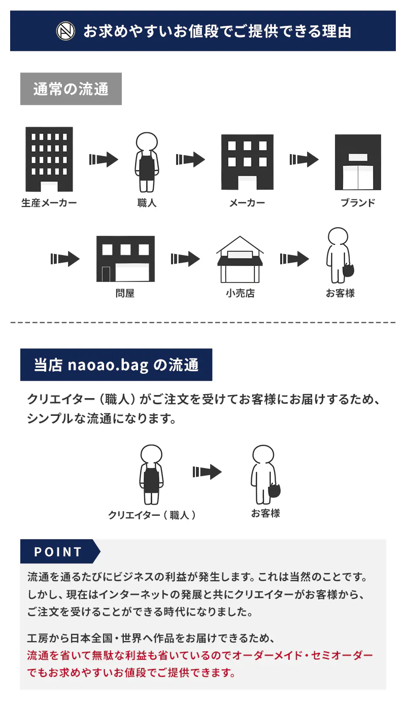 このクォリティーを活かしてさらに多くの方にnaoao.bagのバッグを届けたいと想っています。