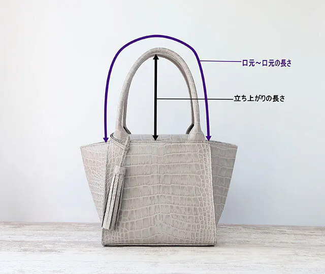 お使いのバッグの手紐の長さを参考にして頂けますと幸いです。