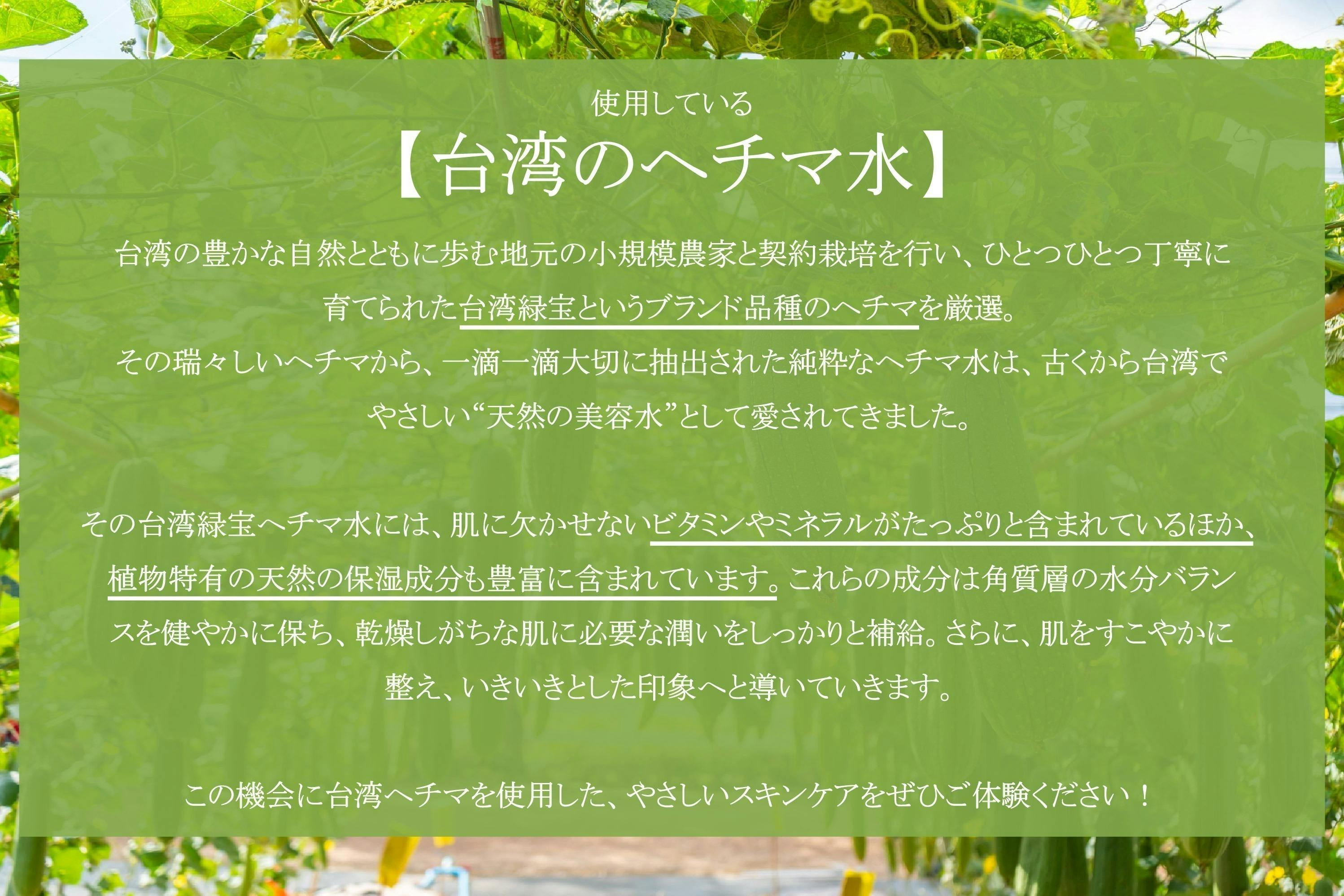 台湾では古くから「ヘチマ水」は天然の美容水として親しまれ、おばあちゃんから孫へと受け継がれる美容習慣でした。だからこそ、日本の皆さまに「台湾の知恵と文化」「自然の恵み」として体験していただきたいと考え、このプロジェクトを立ち上げました。