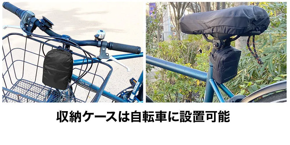 しかし、駐輪場やお出かけ先では濡れたまま置いておくことも多々ありますよね。既存の自転車カバーは大きくかさばり、自転車に設置したり、持ち歩くことを想定して作っていないのです。