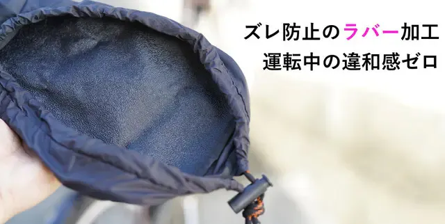 サドルカバーの裏面には走行中の不快なズレを抑制するラバー加工を施しています