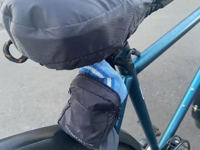 XPANDPACKのサドルカバーは厚手でクッション性を持たせつつ急な雨から守れるように設計されています。