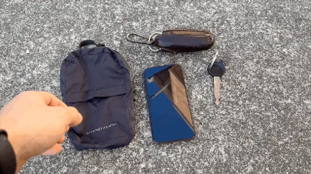 カバーを取り出した後のリュック型収納ポーチはスマホや鍵、定期など小物入れとしても。
