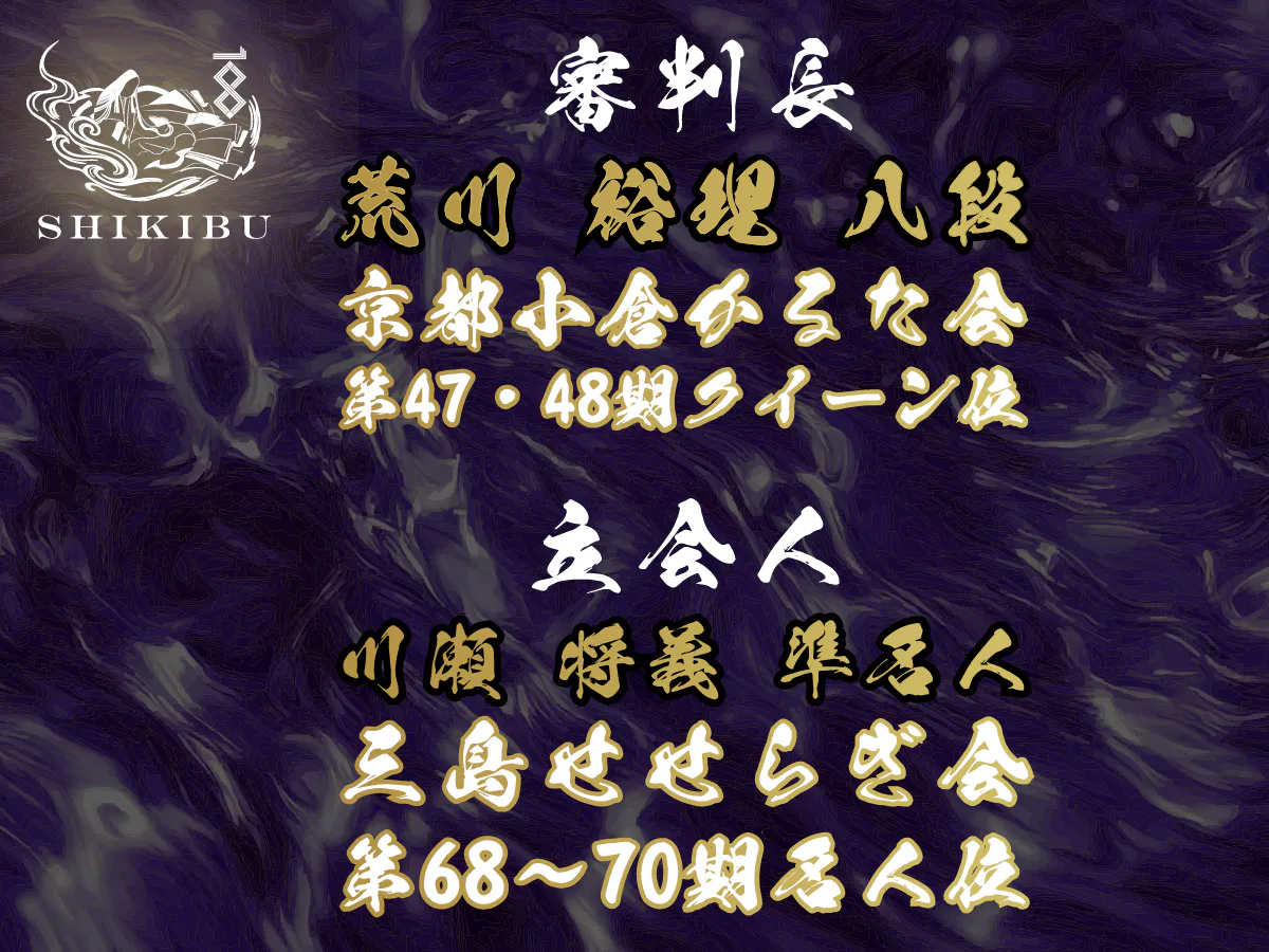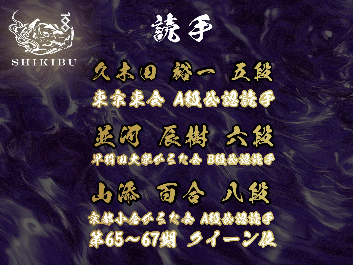 皆さん、こんにちは。SHIKIBU実行委員会代表、小倉百人一首競技かるた第65〜67期名人位の粂原圭太郎です。