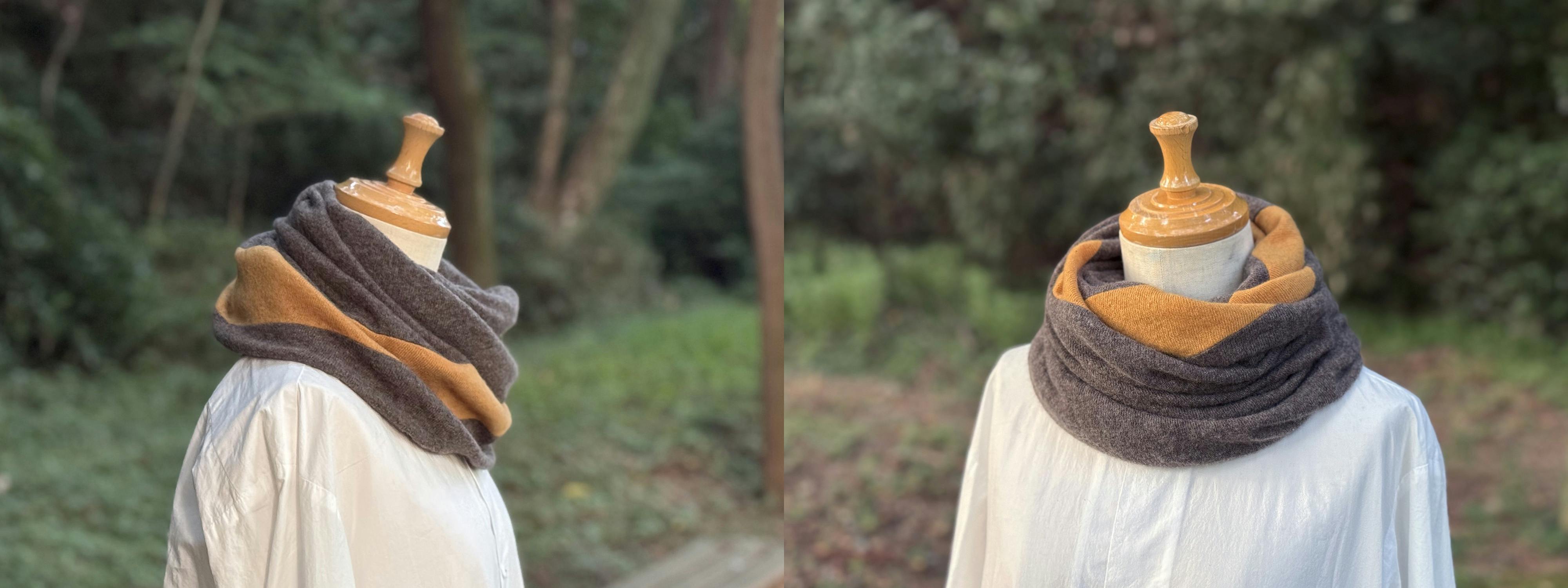 カシミヤを用いた日常に携える首着を制作しています。これは外でも部屋の中でも、いつでも傍にあるそんな存在です。