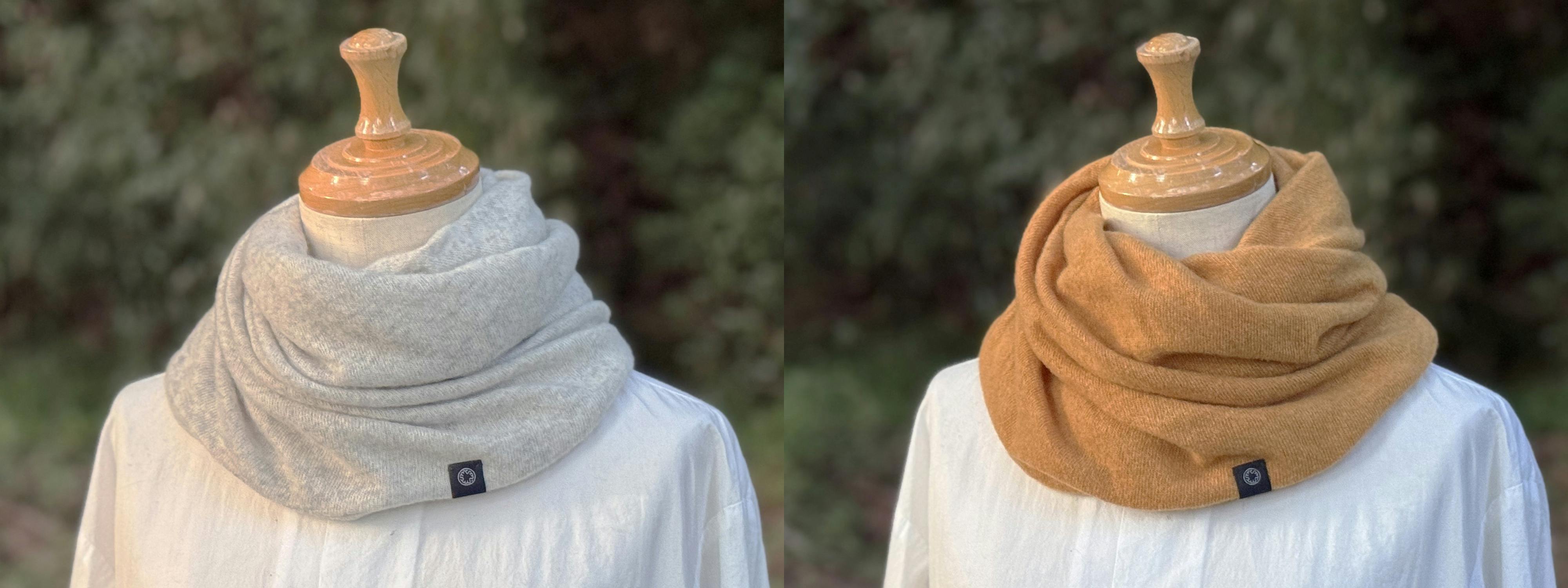 募集締め切りまであと1日半、『雲のような軽さと日差しのような暖かさを持ち運ぶ カシミヤ100%のねじりスヌード』