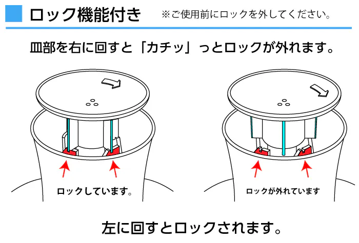 ✅ 蓋(キャップ)と、プッシュロック機能付きなので安心♪
