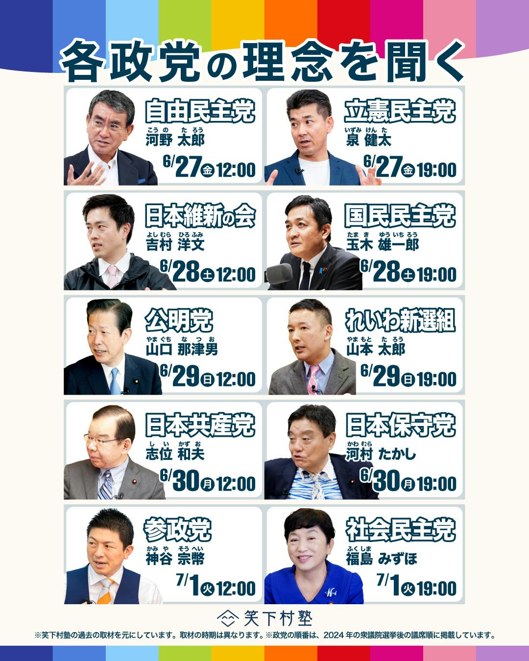 (2)国内10政党の議員インタビュー動画【日本の政党を知ろう】シリーズ連続公開しました!
