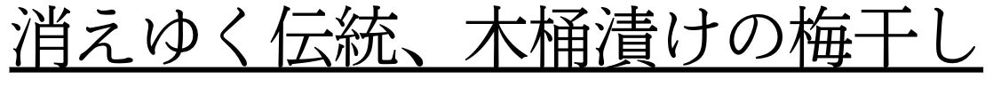かつて日本の食卓を支えていた木桶仕込みの梅干しは、姿を消し、