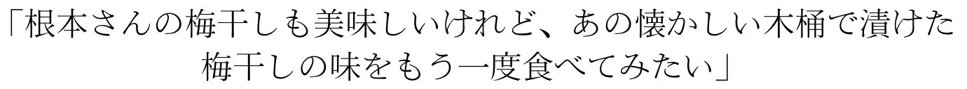 この第一章は 「木桶で仕込む梅干し復活」 ですが、ここから物語は続きます。
