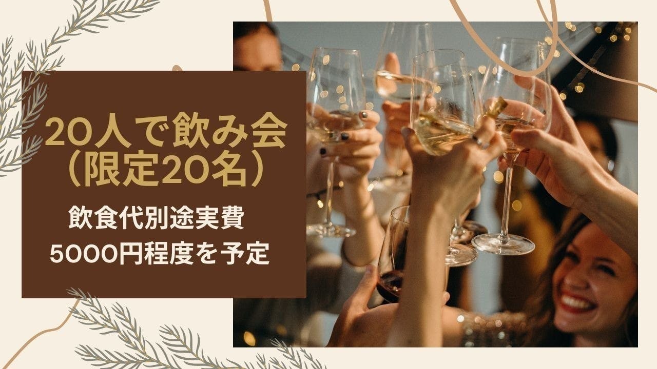 ・20(MAX) 人で飲み会(飲食代別途実費)(限定20名)5000 円+飲食代(実費5000 円程度を予定)