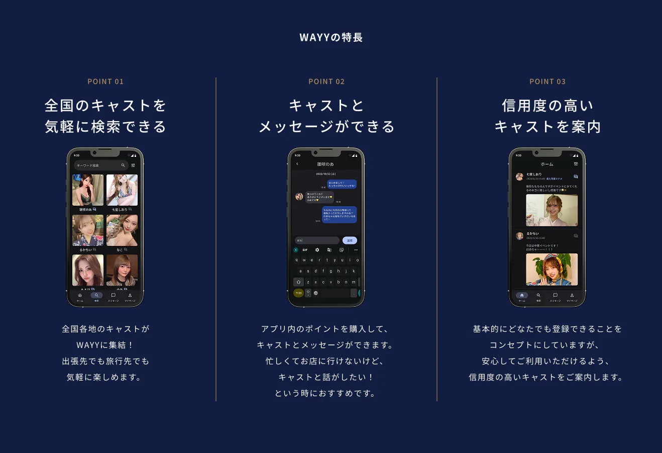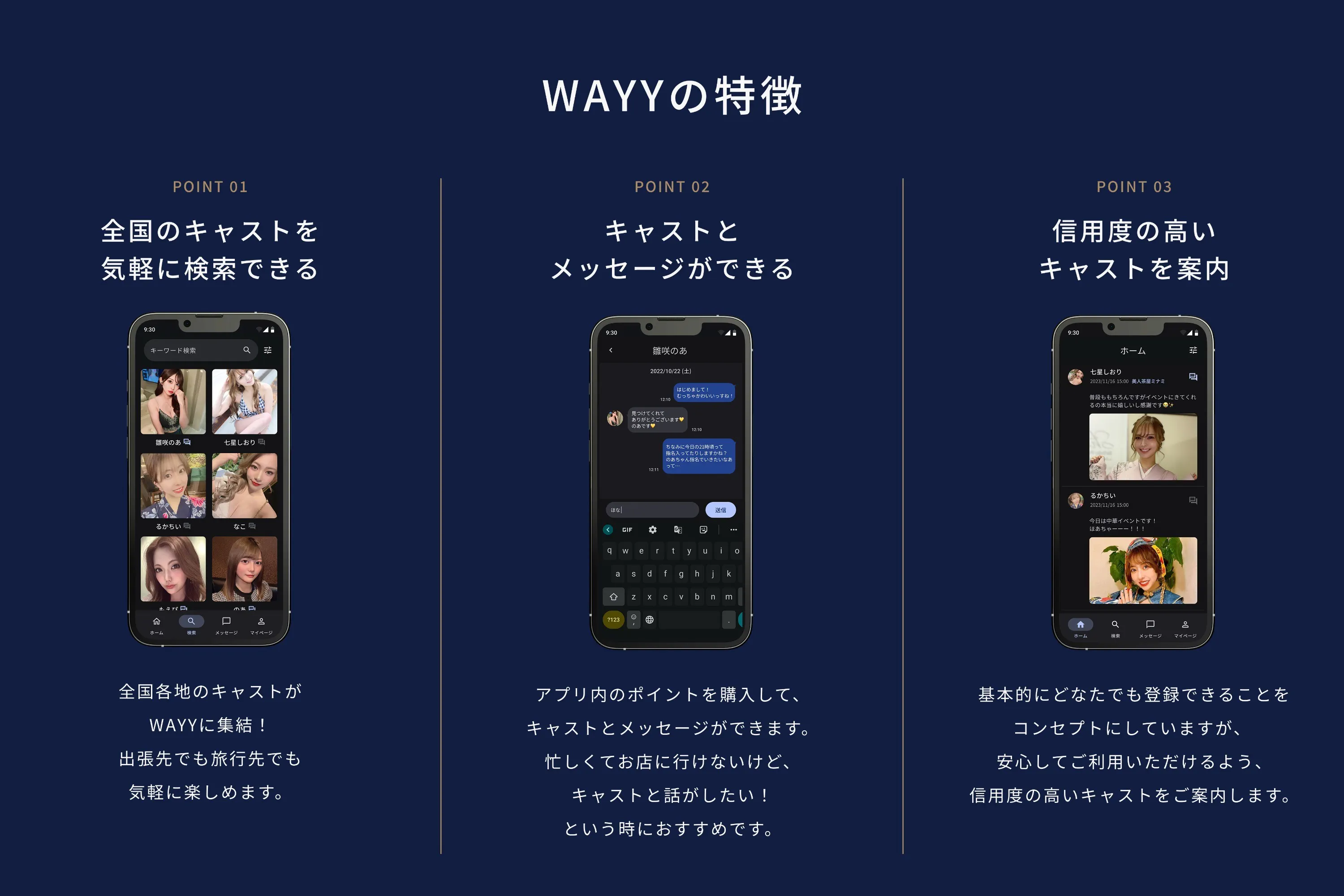 WAYYはリリース済みで、キャスト、ゲストともに150名以上が登録して頂いています。