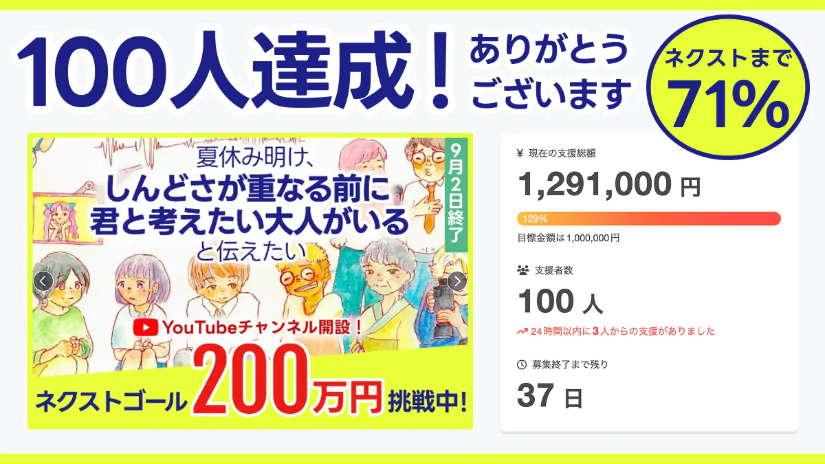 こんなに多くの方に応援いただけたことを大変嬉しく思いますし、子ども若者のことにたくさんの大人が関心を持ってくれていることに、希望も感じます。