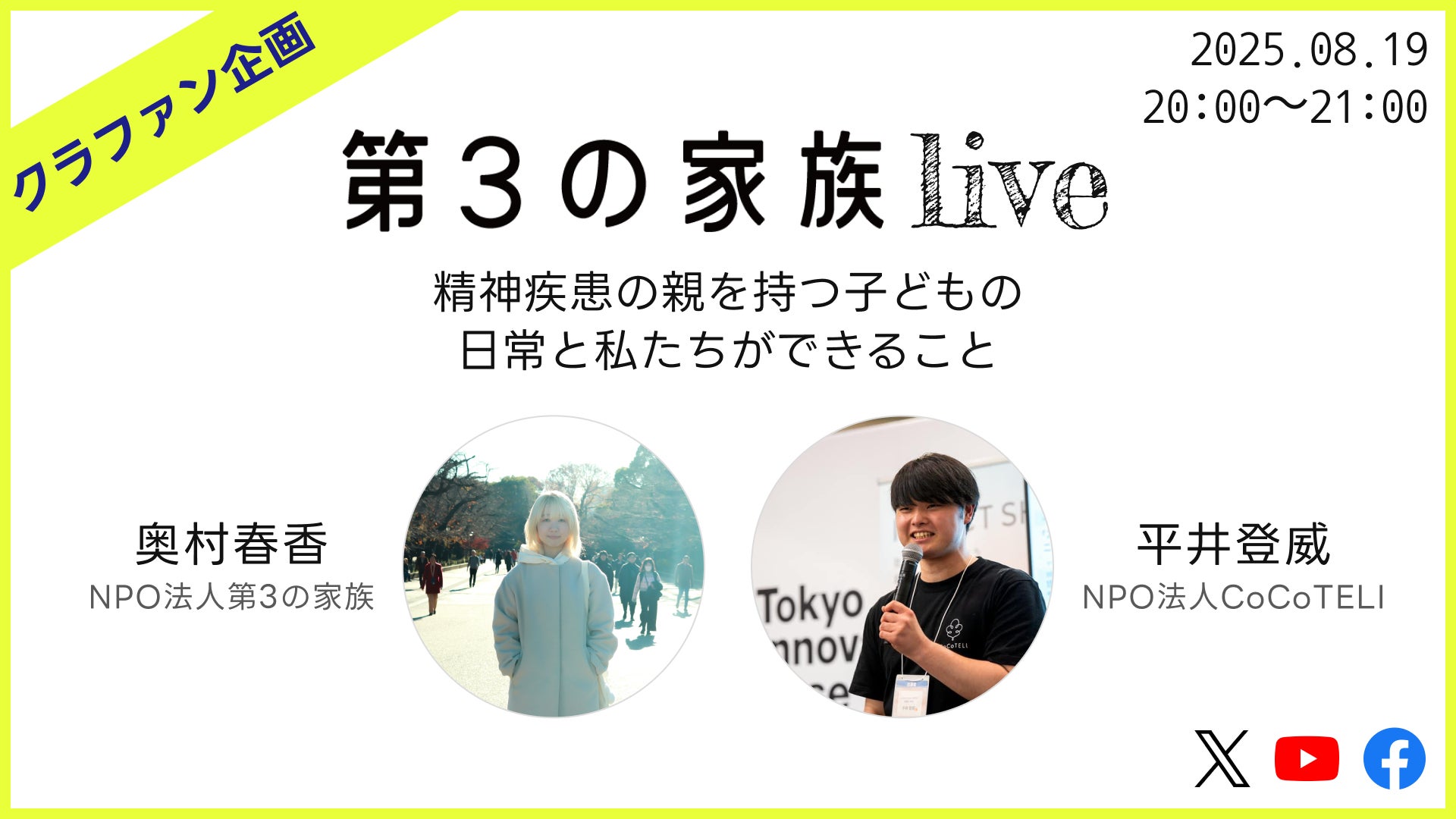 参加者:NPO法人サンカクシャ代表理事 荒井佑介、NPO法人第3の家族理事長 奥村春香