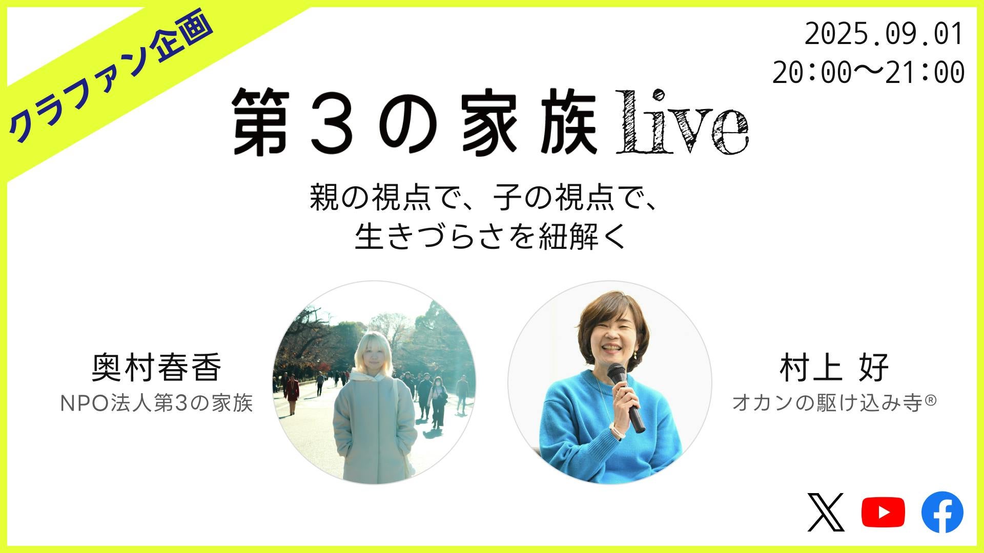 参加者:オカンの駆け込み寺®︎代表 村上 好、NPO法人第3の家族 理事長 奥村春香