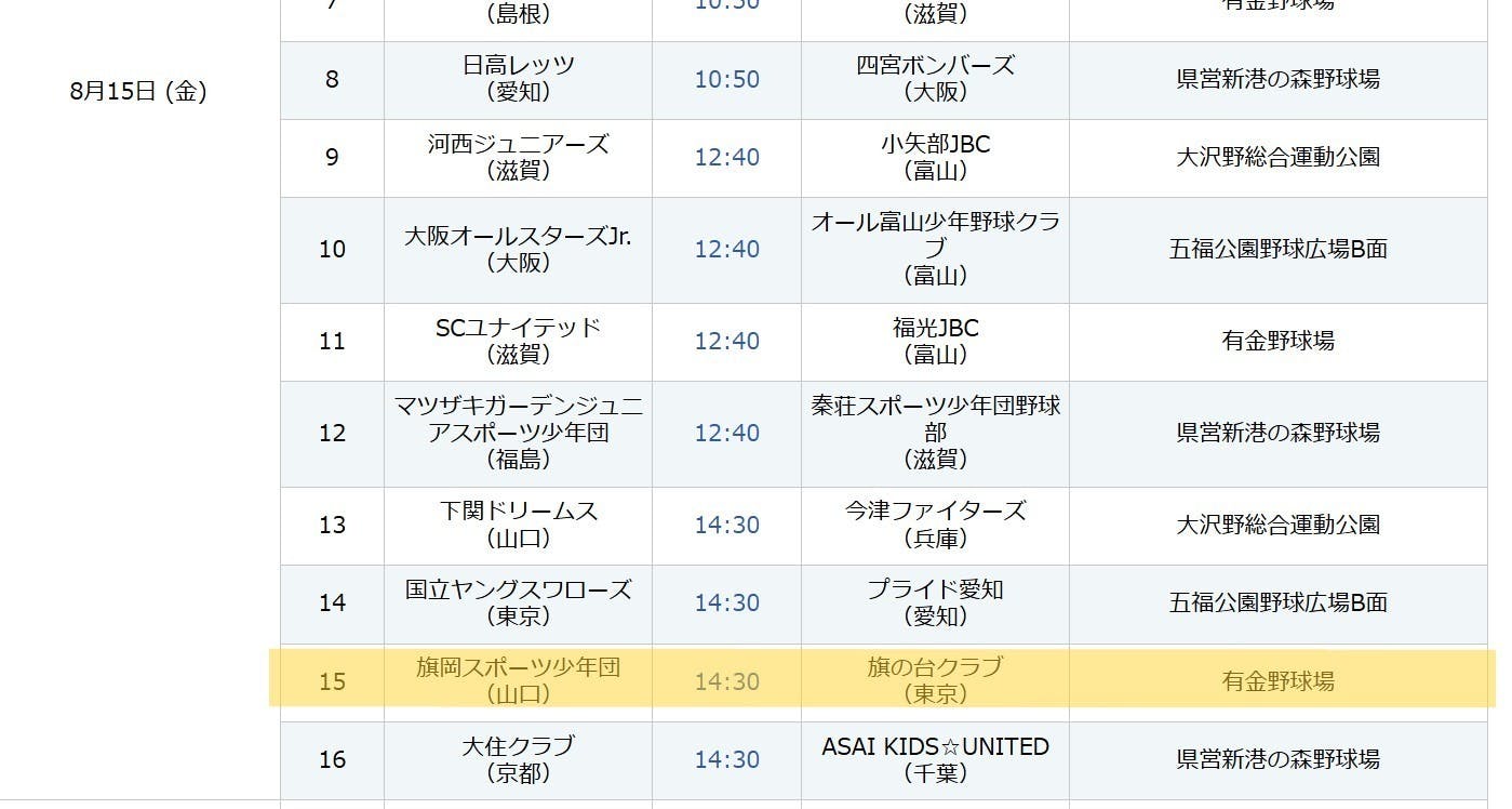 ○初戦:8月15日(金) 14:30~
