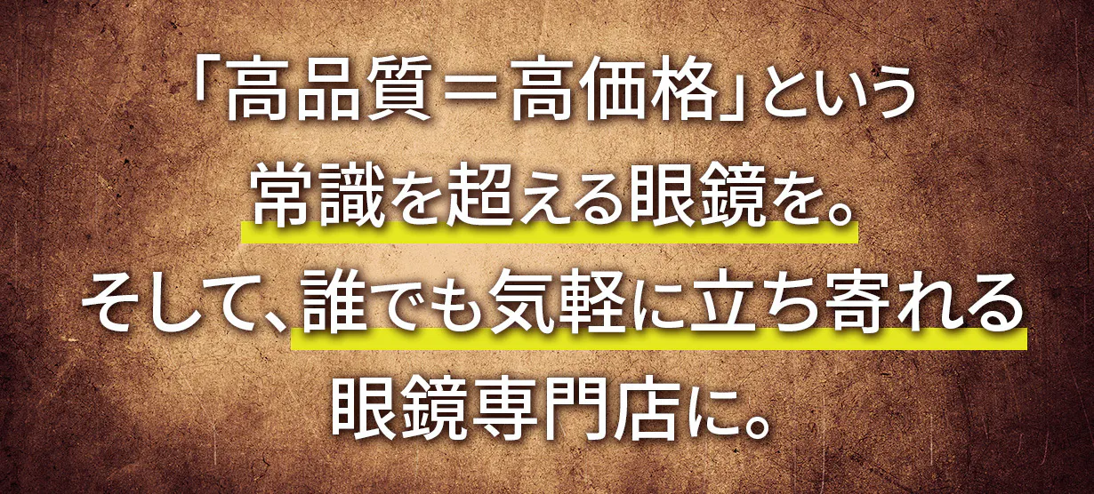 これまで眼鏡業界で30年余りの経験を積むなかで「高品質の眼鏡を、誰もが手に取ってもらえるようにしたい!」という想いをずっと持ち続けてきました。