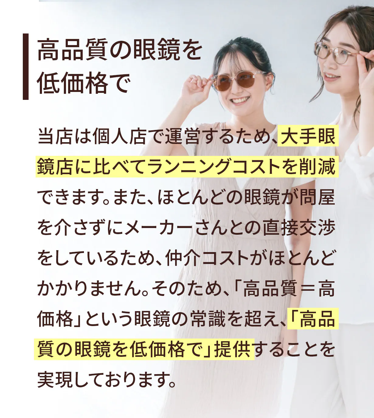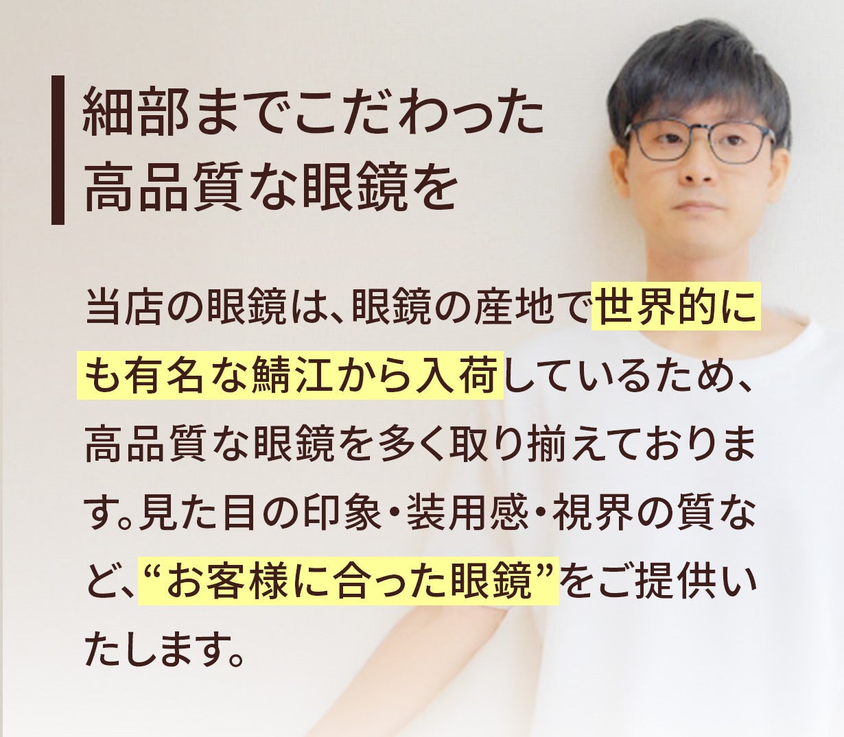 “本当に似合う眼鏡”を、価格面でも納得しながら購入していただく。