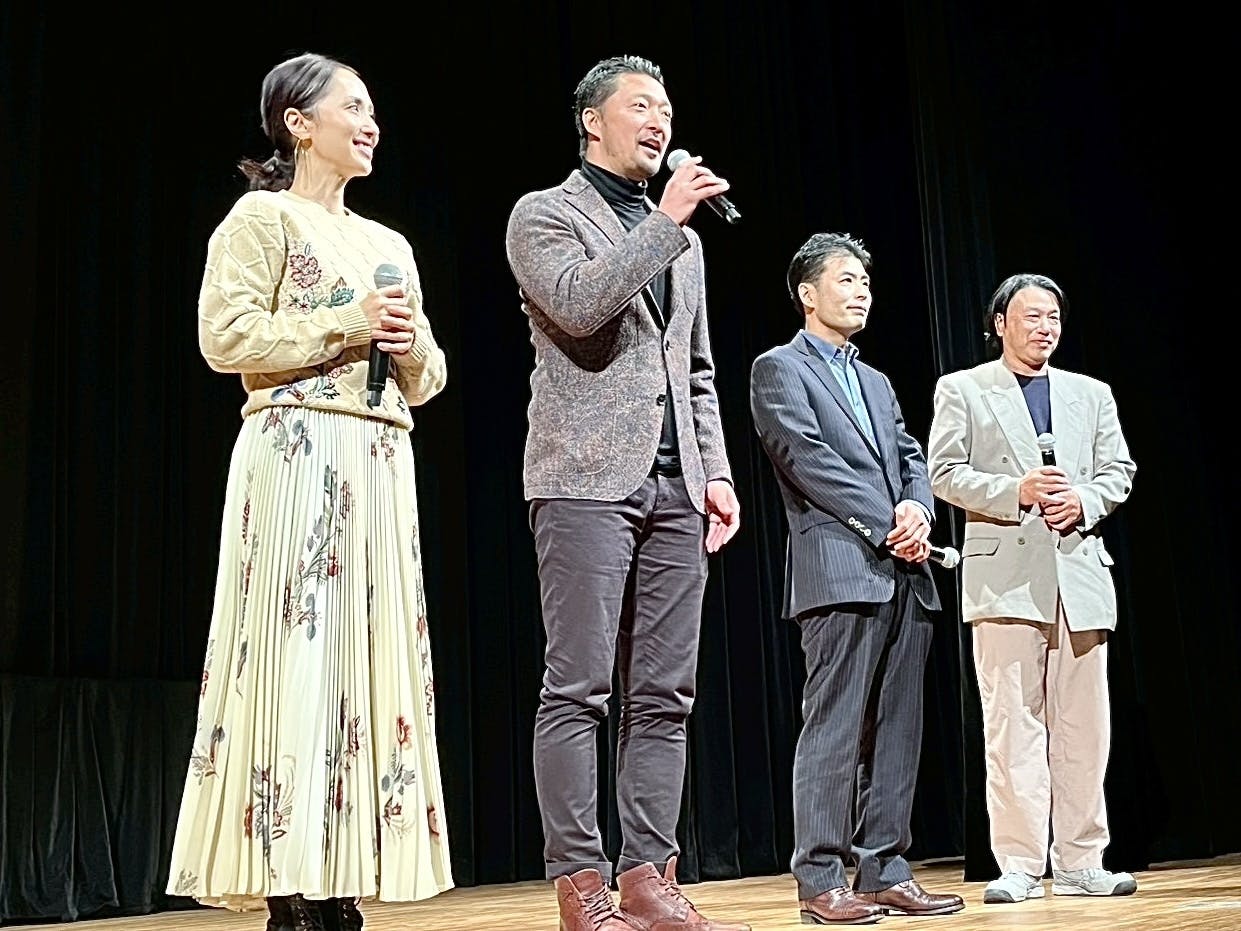 当日は、主演の楊原京子・金児憲史(実際の夫婦で、劇中でも夫婦役)と宮下玄覇監督が登壇し、司会は新城市設楽原歴史資料館館長・湯浅大司様が務めました。
