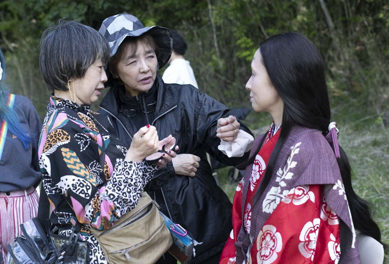 左から高嵜さん・江川さん・お艶[特殊メイク・かつらスーパーバイザー:江川悦子]