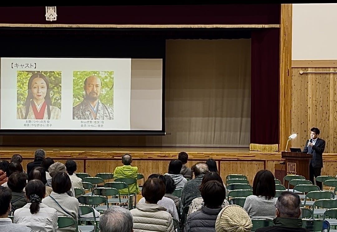 2025年11月30日(日)、長篠の戦い450年・鳳来中部文化祭(主催:長篠公民館、乗本公民館)にお招きいただき、特別上映を行わせていただきました。会場は長篠城にもほど近い、鳳来中学校の体育館。文化祭参加者は400名を超え、本作には200名以上の方がご視聴くださいました。上映後、地元の皆さまからは「とてもよかった」「キャストが素晴らしい」などお声を頂戴し、気持ちが温かくなりました。また、長篠合戦のぼりまつり奉賛会の皆さまが「長篠」Tシャツを着てくださっていたのも、とても嬉しい光景でした。今回の上映に際し、河野誠様には多大なるご協力を賜りました。この場を借りて心より御礼申し上げます。