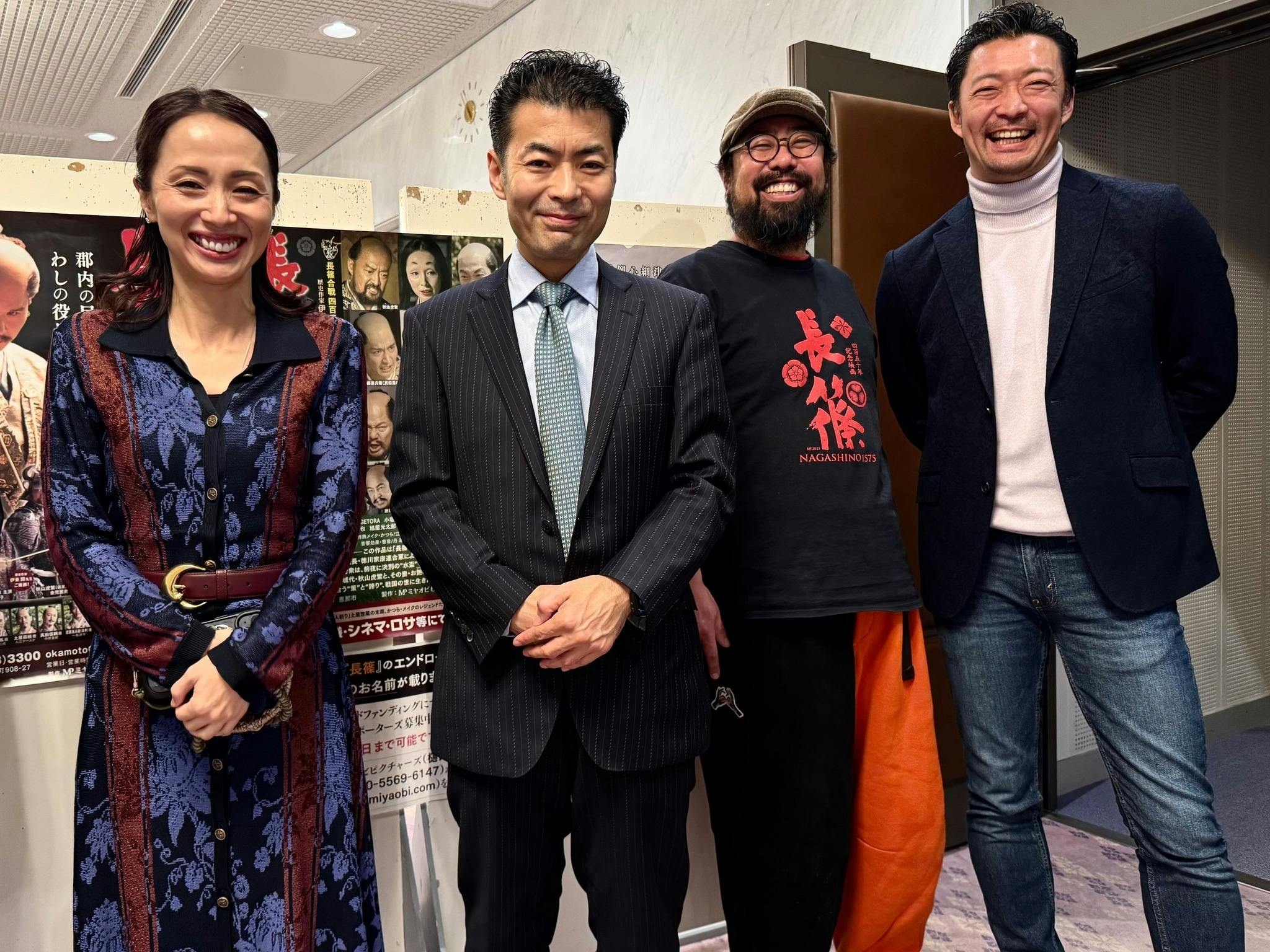 2025年12月28日(日)、映画『長篠』特別編集版上映会を、山梨県韮崎市・東京エレクトロン韮崎文化ホールにて開催しました。地元の郷土研究組織・武田の里を守る会との共催です。会場には200名を超える皆様にご来場いただきました。上映に先立ち、信玄公菩提寺・恵林寺ご住職の古川周賢老大師よりご挨拶を頂戴しました。「戦国武士の死生観」についてのお話は大変わかりやすく、深い感動を覚えました。上映後には舞台挨拶を行い、W主演の楊原京子さん(お艶の方役)、金児憲史さん(秋山虎繁役)と監督が登壇。お艶の方が養育した「御坊丸」こと津田(織田)源三郎信房のご子孫の方(本能寺の変で討死後、嫡男・勝良は伯父・信雄に仕え、その後、加賀藩前田家600石の藩士として存続)にもご来場いただきました。また、柳澤家のご子孫などもお越しになり、武田家は滅亡後も幕臣として、系譜を連綿と繋いできたのだと、改めて実感いたしました。さらに、クラウドファンディングでご支援いただいている皆様、現在『長篠』衣裳展を開催している信玄ミュージアム館長の佐々木満様、龍華院(上曽根町)の長井様など、師走の年末押し迫った時期にもかかわらず、多くの方々にご来場いただきました。この度は、武田の里を守る会 顧問の桝形昭平様、細田芳文様、小林兵武様、小野賢治様にお世話になりました。