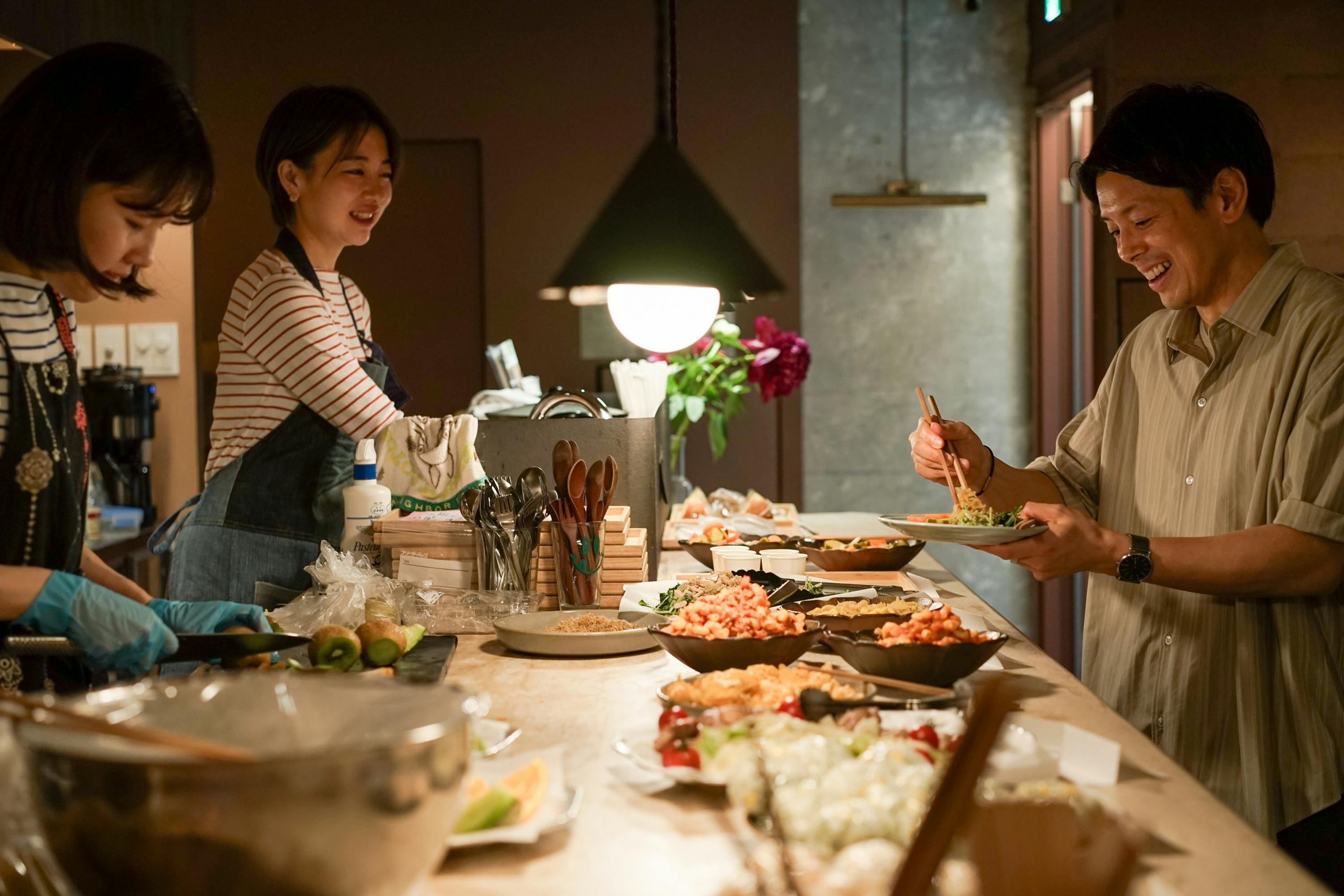 間借り営業最終日は、夜にビュッフェイベントを開催! コワーキングスペースの施設内の店舗だったため、年齢も性別も国籍もさまざまな、たくさんの会員さんにもご愛顧いただきました