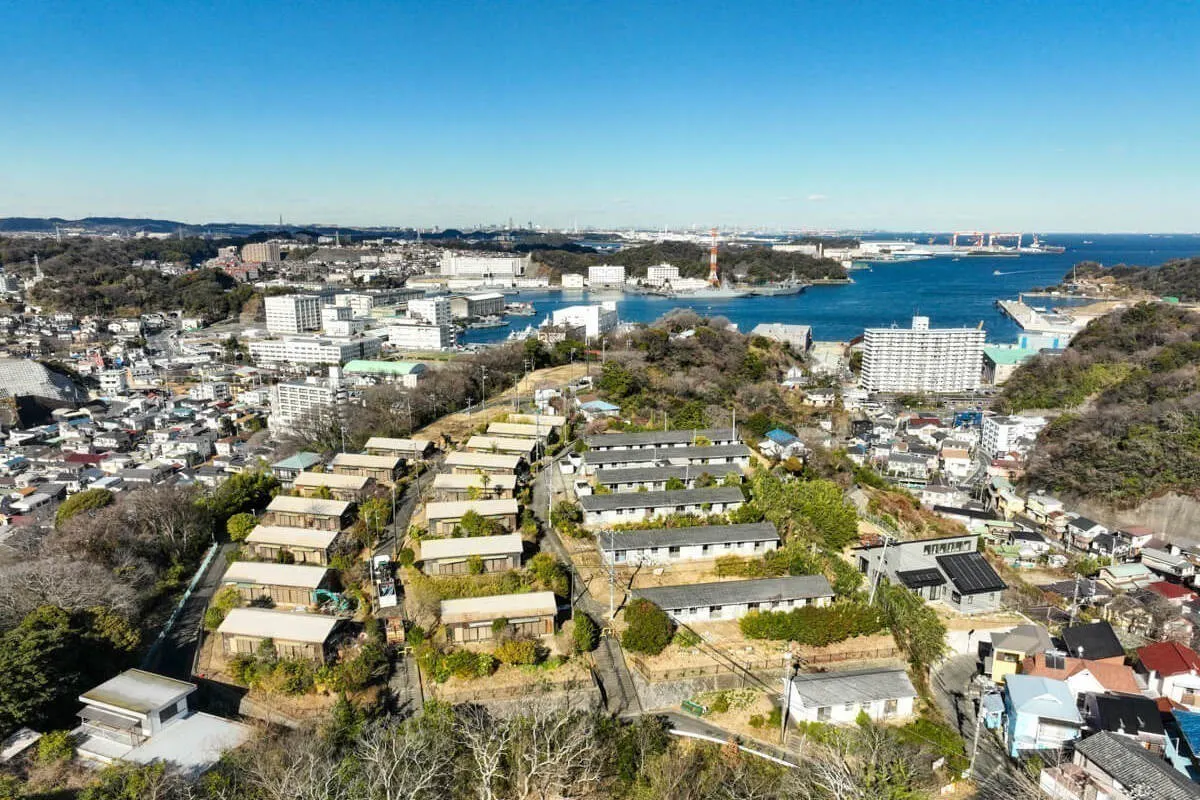 挑戦の舞台となるのは、横須賀市田浦町の高台にある月見台住宅。戦後につくられたかつての市営住宅は現在は全て空き家。立地の都合上建て替えができないため、物件をリノベーションして“ヴィンテージ&クリエイティブ”をテーマに新たなまちづくりをしよう、という横須賀市の「月見台住宅再生プロジェクト」に、いもこめも参加することに決めました。