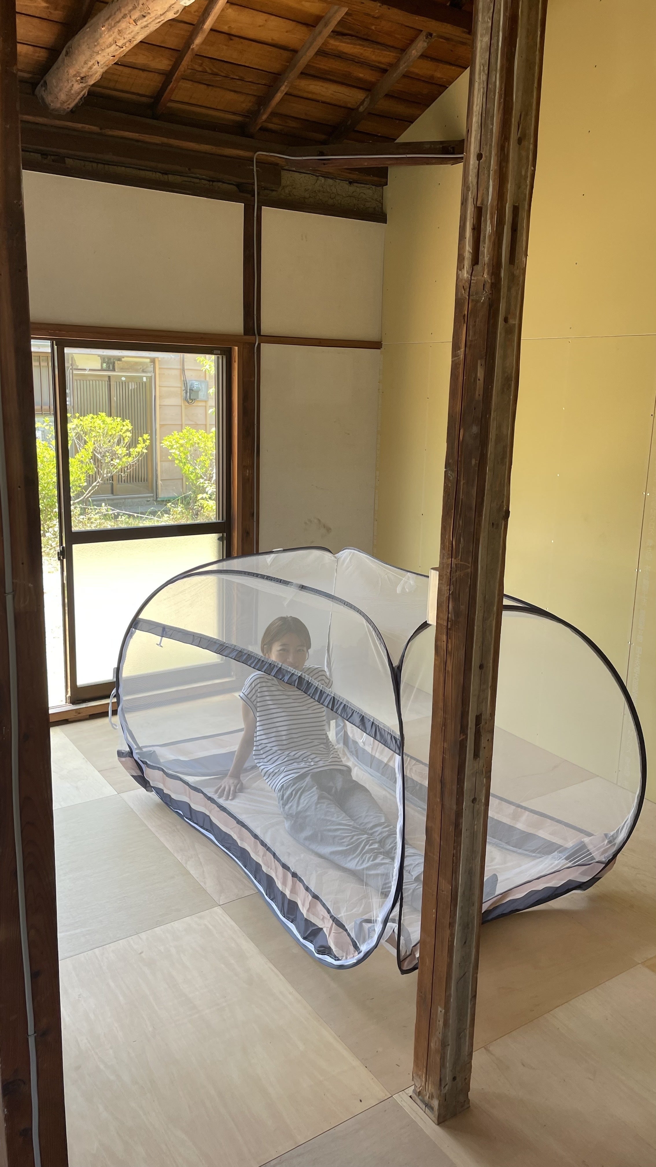 まずは快適な安眠確保!ということで、蚊帳を買いました。あとは、ソファ代わりにもなるマットレスも。
