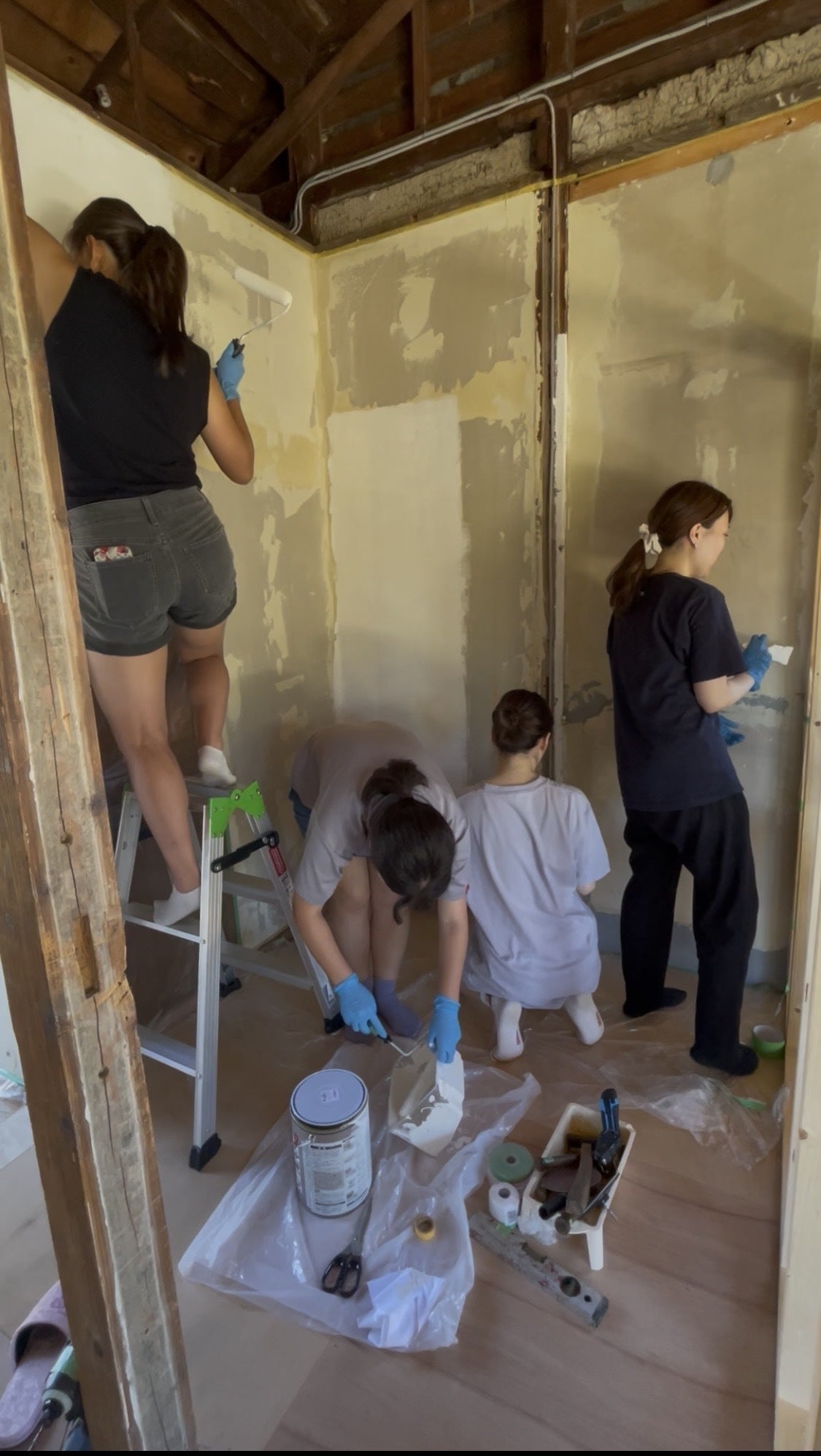 壁を補修するパテ作業を終えた後、塗装に取り掛かりました。