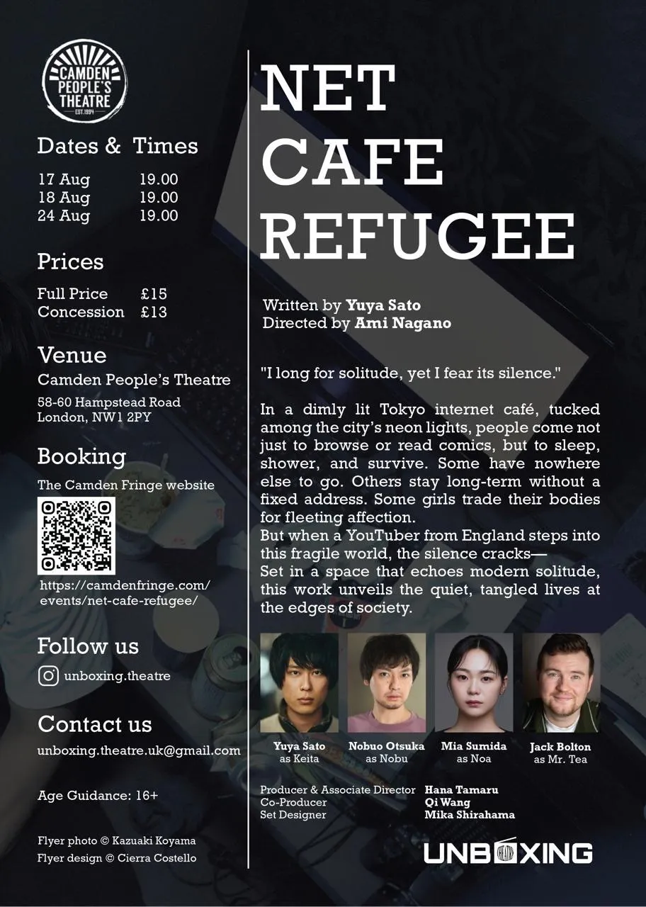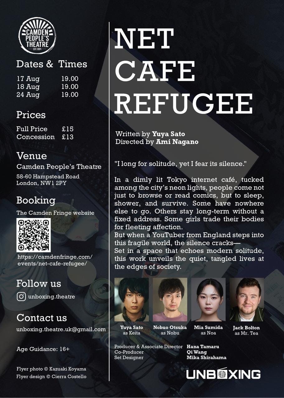 ロンドンで暮らす日本人クリエイティブとして、私たちは「日本の本当の姿を届ける」「我々の世代がイギリスに新たな日本の演劇史を築いていく」という強い信念のもとNet Cafe Refugeeの制作に励んでいます。