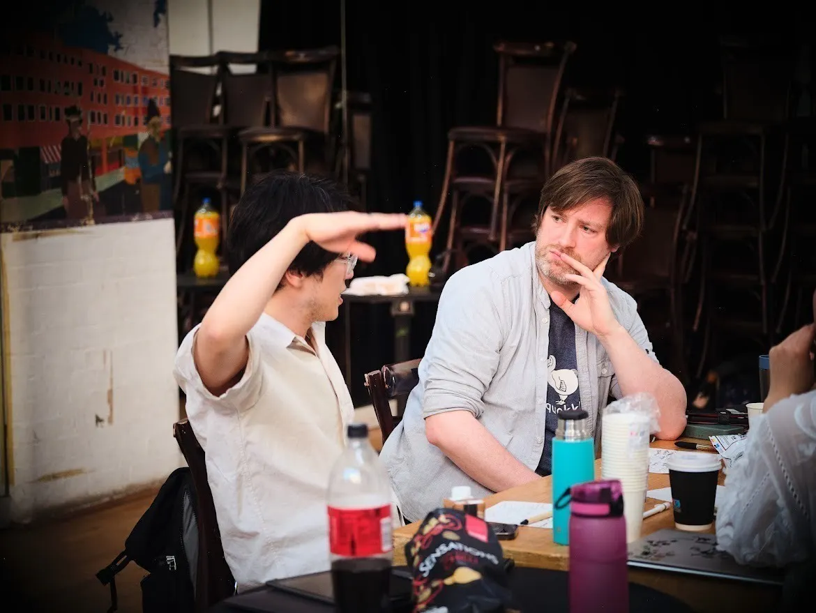 2025/08/13 09:06こんにちは!Unboxing Theatre代表の佐藤です。稽古も残すところ、あと4日となりました。この2週間で新しいクリエイティブメンバーが3人も加わり、プロジェクトが急激に大きくなっていることを実感しております。みんな本プロジェクトに興味を持ってくれて有志で参加してくれおり、本当に感謝しきれません。舞台セットはもちろん、曲もゼロから作っており、また振付師やテックオペレーターも参加しています。写真は、先日のボイスコーチによるセッションの様子です。イギリスでは稽古場にボイスコーチと呼ばれる人を入れて、声の出し方や英語の発音などを手助けしてくれます。写真に映っているのは私、佐藤と、出演者の一人Nobuo Otsukaさんです。次回は、皆さんのご支援のおかげで出来上がってきた舞台セットを公開しようと思います。皆様引き続き、ご支援および拡散のほどよろしくお願いいたします。 もっと見る