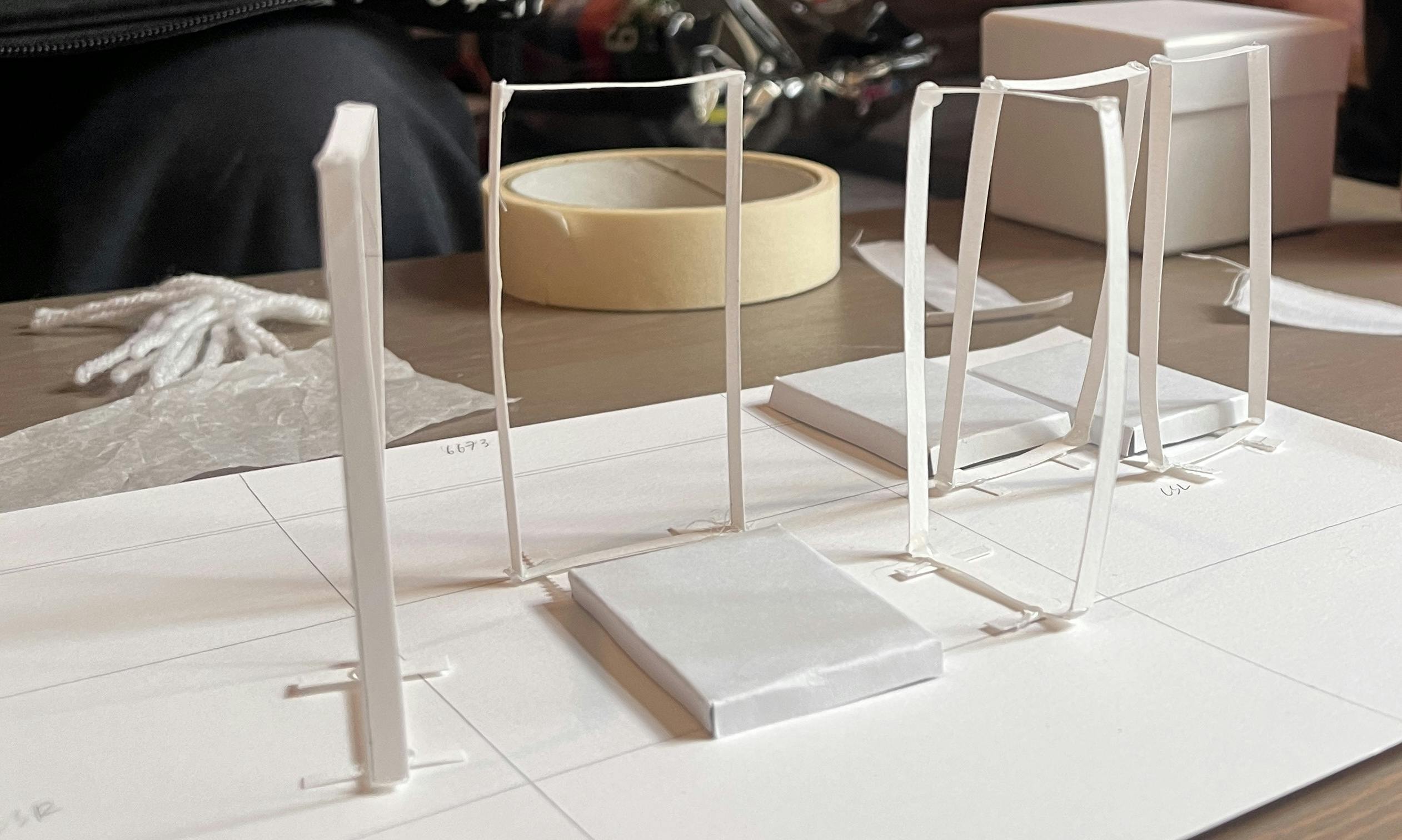 先日、舞台セットの試作及びテストを行いました。写真は、舞台セットイメージのミニチュアです。現在、ネカフェの一つのブースまで仮制作することができました。光を当てると透けて見えるパーティションや、本物に近づけるためのブース内の小道具など、まだまだやらなければいけないことは山積みです!