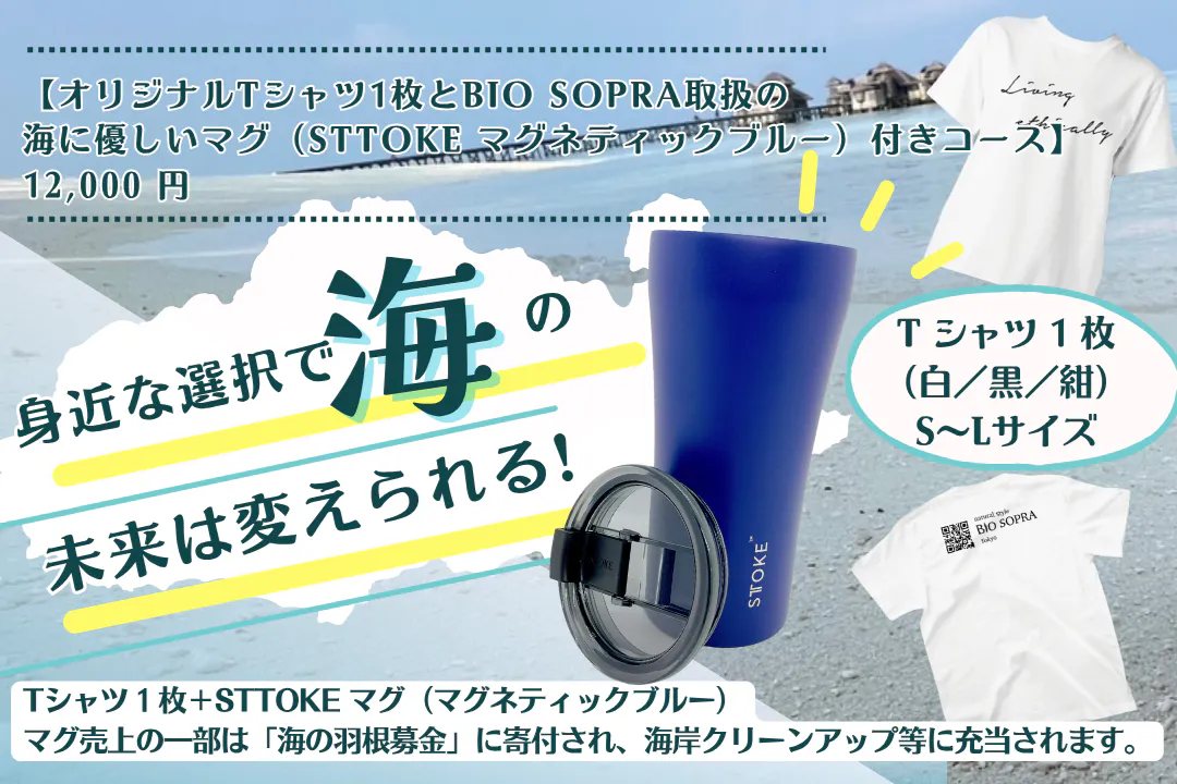 【オリジナルTシャツ1枚とBIO SOPRA取扱の海に優しいマグ(STTOKE マグネティックブルー)付きコース】