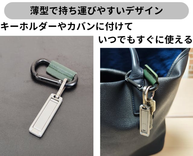 「TiHook」にはストラップホールが付いているため、キーホルダーやカバンに取り付けることができます。