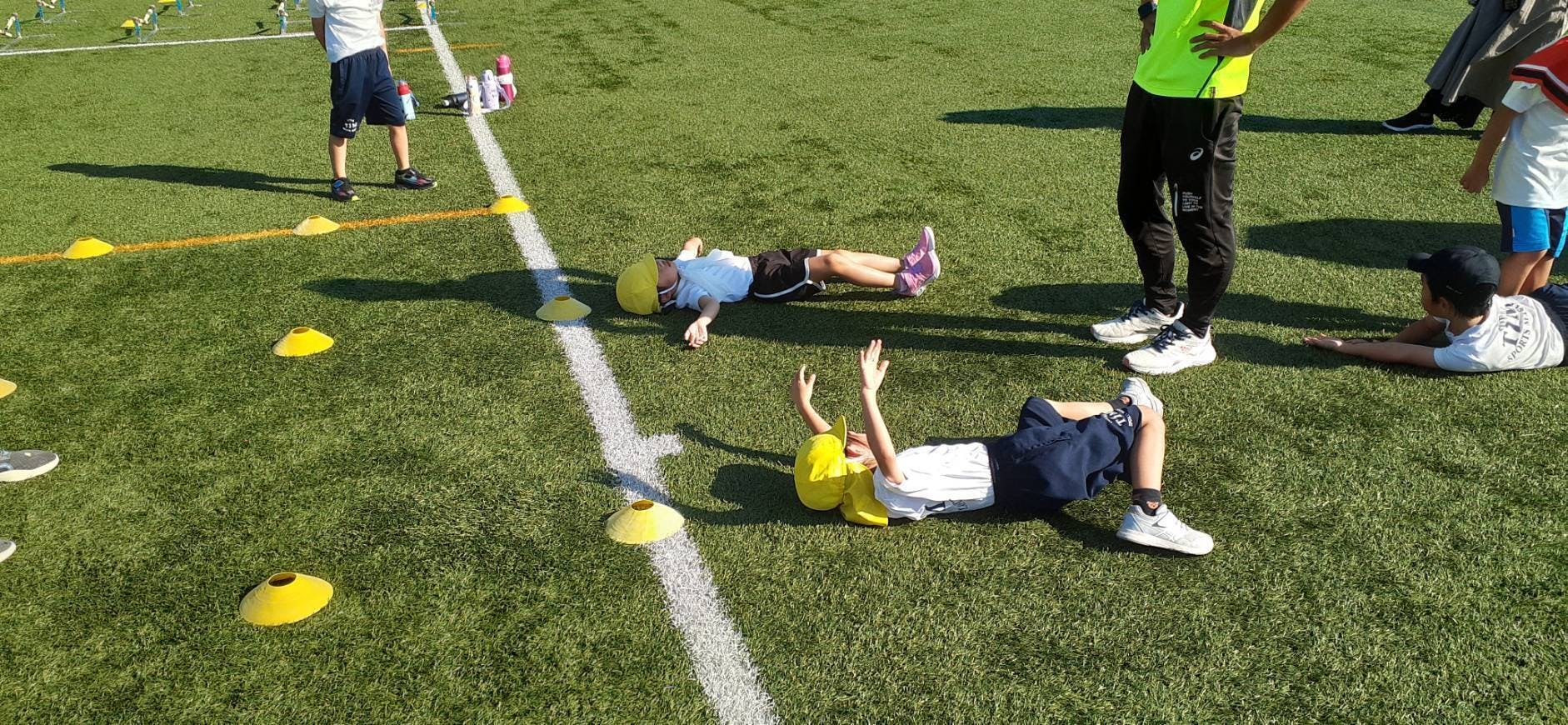 通常は土のグラウンドで行うことがほとんどですが、時折今回のように芝のグラウンドを利用することができ、趣向を変えた流れで行うことがあります。