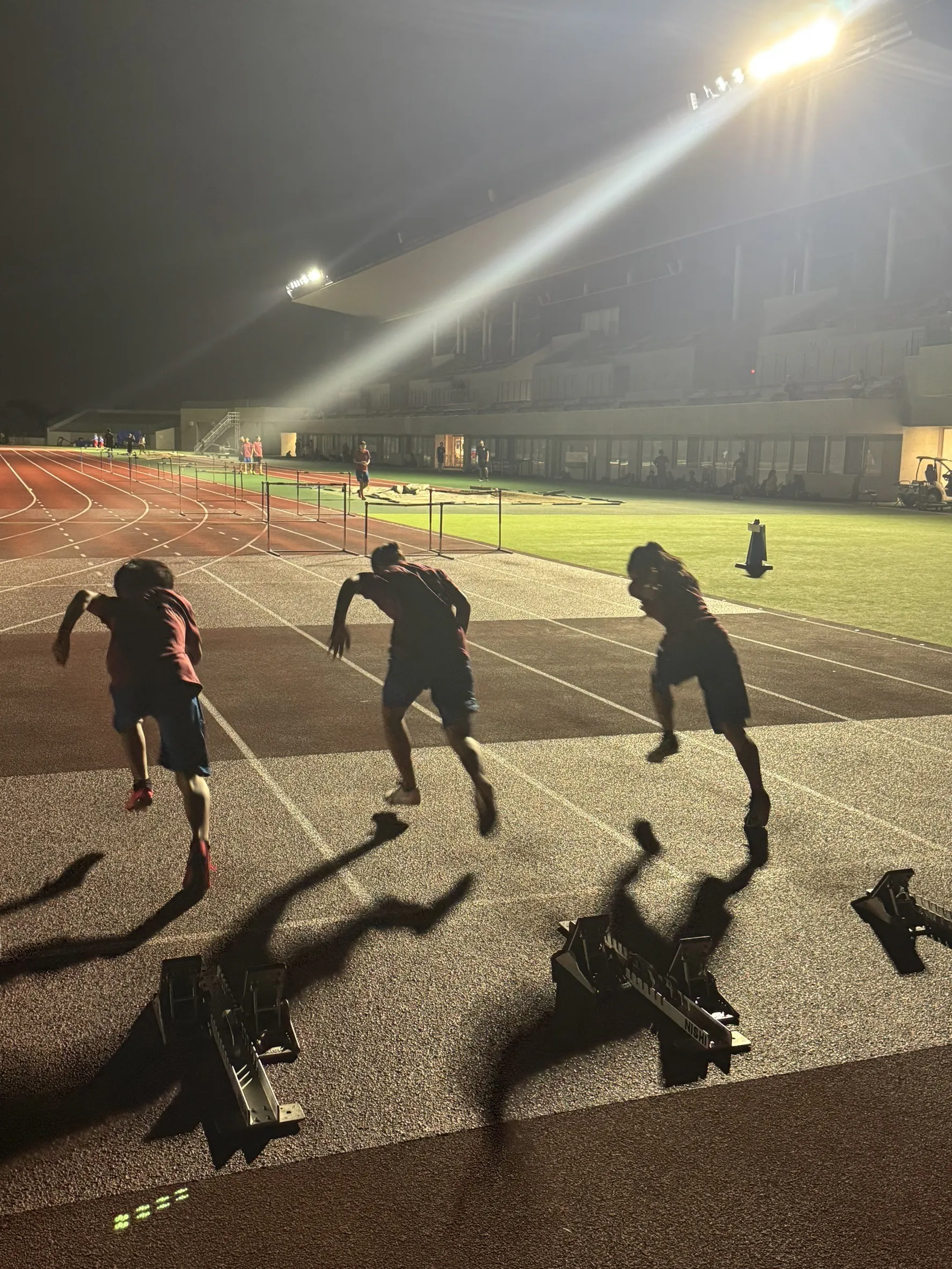 中長距離練習では、蒸し暑い中でも互いに競り合い、全力で追い込む姿。