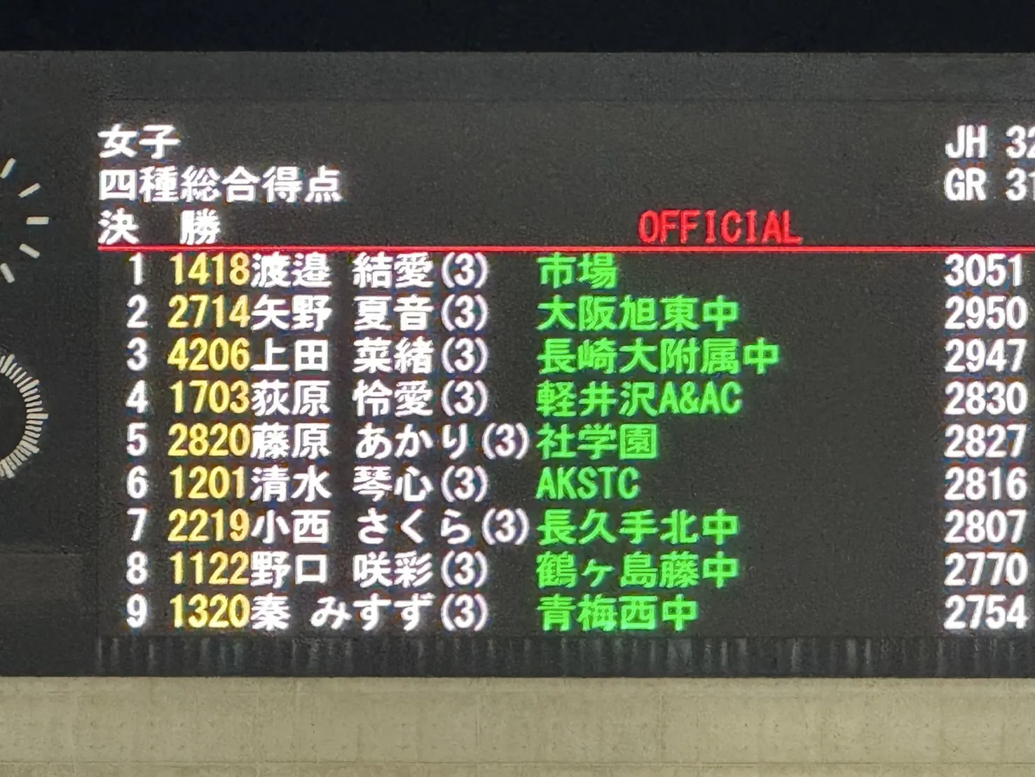 ◆ また、女子四種競技の残り2種目が本日実施され、小西選手が見事7位入賞! 全国の舞台でしっかりと結果を残してくれました。