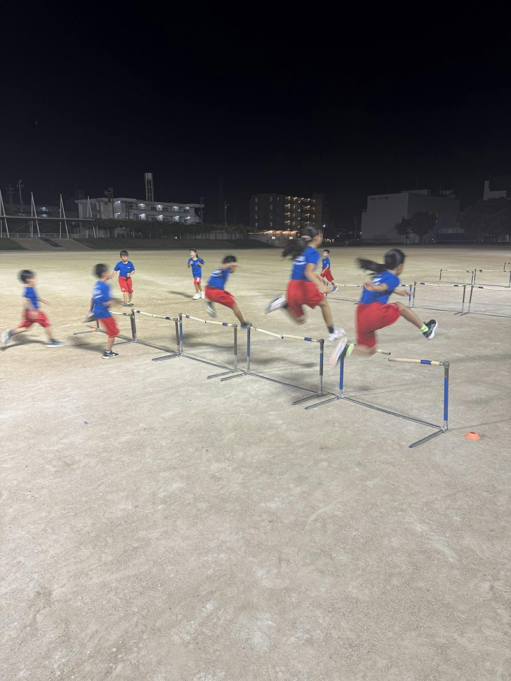 【8/15(金) 岡崎地区活動報告】こんにちは!いつも変わらぬ熱いご声援、本当にありがとうございます!本日は市内グラウンドにて、小学生を対象とした講習を行いました。ちょうど終戦記念日ということもあり、「先人たちが築いてくれた今の環境への感謝を忘れずに」というお話があり、選手たちも真剣な表情で耳を傾けていました。日中は風もなく厳しい暑さでしたが、夕方からは涼しい風も吹き、心地よい環境の中で練習を行うことができました。メインは小学生の講習でしたが、中学生も自主的に参加し、来週に迫った全三河中学生陸上競技選手権に向けて集中した練習を行っていました。ハードルでは足の運びをビデオで確認しながら、細部にこだわる姿勢が光っていました。小学生の練習では、高跳びの動きづくりに初挑戦する子も多く、苦戦しながらも一生懸命チャレンジする姿が印象的でした。またハードル練習では、上半身の使い方を意識することで、短時間のうちに大きく成長する子がたくさん見られました。この中から数年後、全中の舞台で活躍する選手が生まれるかもしれません。そんな未来を楽しみにしています!そして――いよいよ間もなく沖縄全中が始まります!選手たちは皆さまの声援を力に変えて、全力で挑みます。どうぞ熱いご声援をよろしくお願いいたします!
