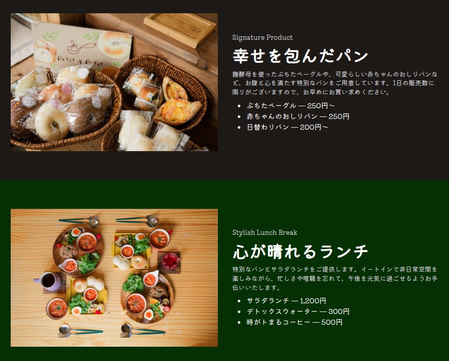 ベーカリー&カフェ petit a petitのメニューをご紹介いたします。