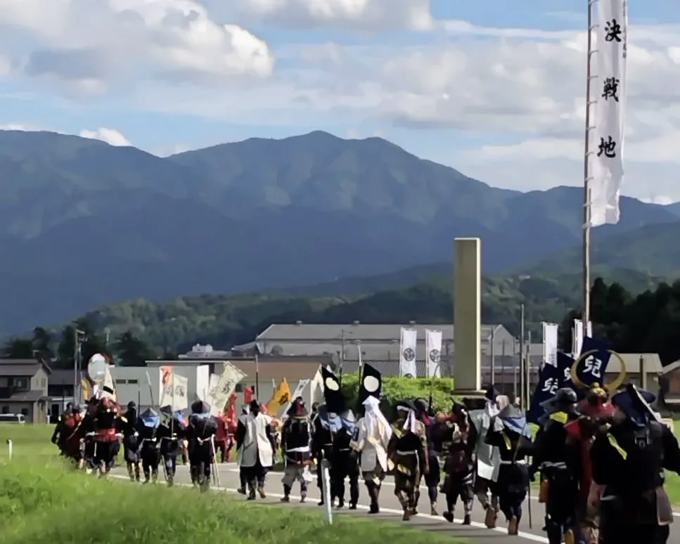 関ヶ原戦国甲冑館主催にて昨年の関ヶ原の戦いの日である9月15日に初開催した関ケ原の戦いの再現イベントです。参加者様全員が甲冑を着用し複数の東西部隊に分かれ関ケ原町内の各陣跡より笹尾山に向けて進軍(行軍)し笹尾山にて関ヶ原の戦いの再現戦パフォーマンスを行いパフォーマンス終了後に全軍にて関ヶ原ふれあいセンターに集結、全軍での勝鬨を行う年に一度の一大イベントです。