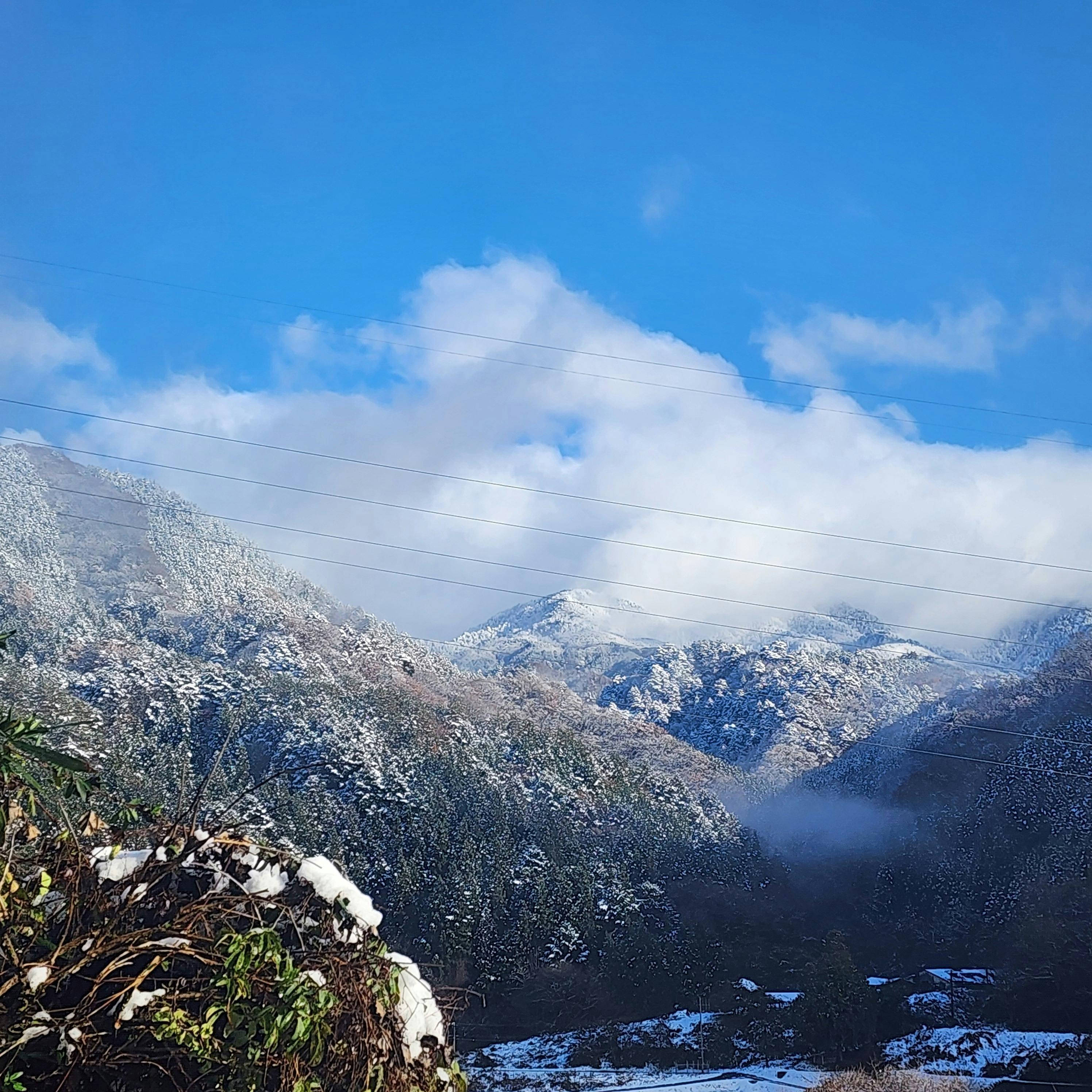 冬になると山も雪景色