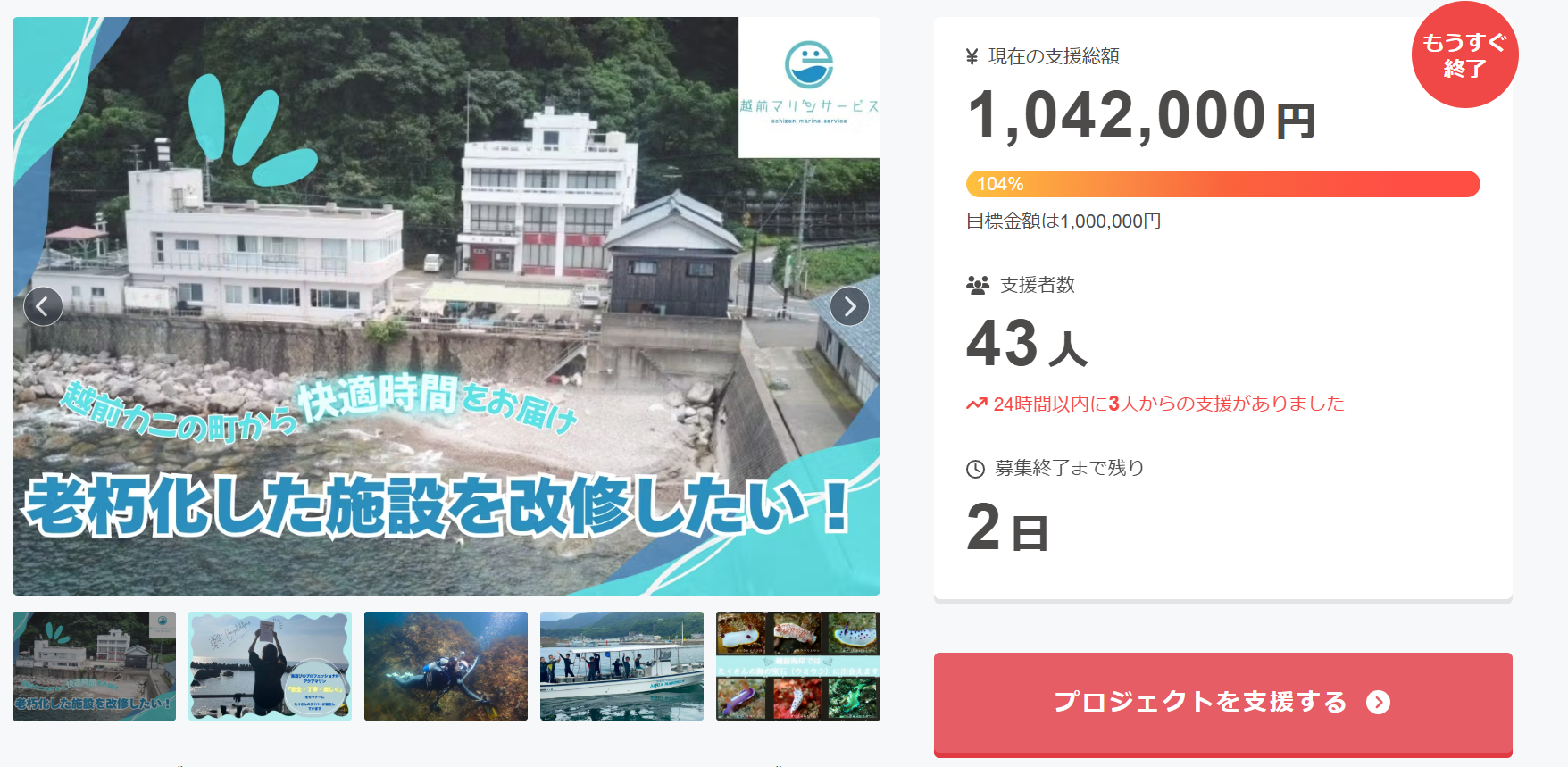 クラウドファンディングは残り2日あります。