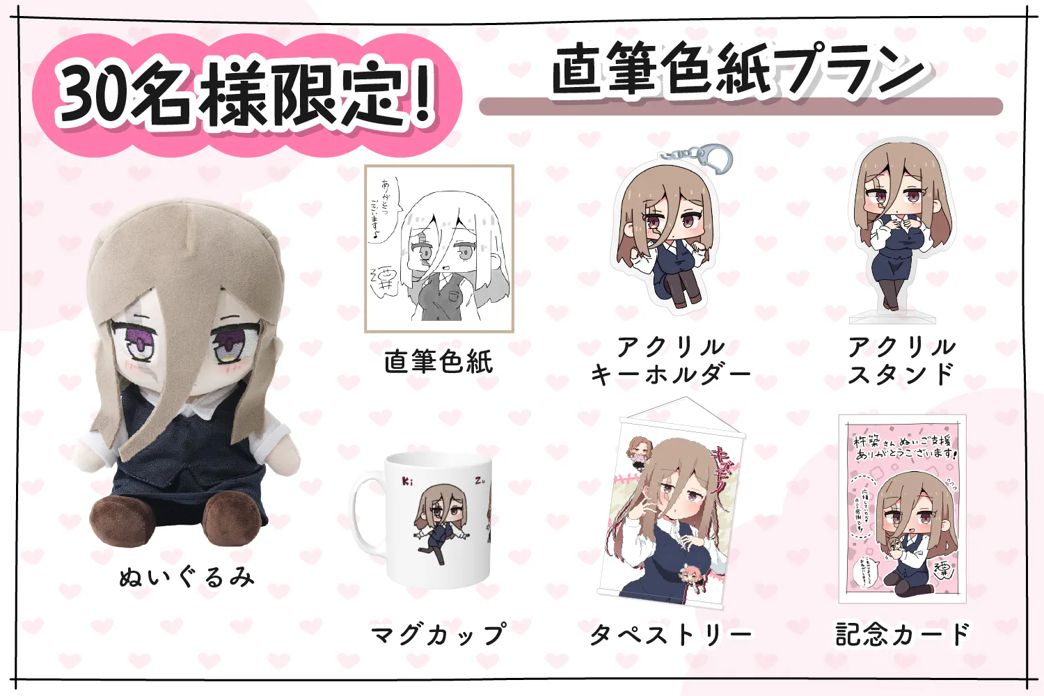 2025/07/11 17:00Creationスタッフです。「杵築さん」ぬいぐるみ化プロジェクト!へのご支援ありがとうございます!現在クラファン絶賛開催中です!!目標金額を達成すると、杵築さんぬいぐるみが商品化!未達成の場合、残念ながら商品化は実現しません・・・。ぜひ、杵築さんぬいぐるみ商品化実現のためご支援よろしくお願いします!!オススメは作者の直筆サイン&直筆イラスト入り色紙がゲットできるプラン!クラファンのために描き下ろされた特別な色紙です♪ぬいぐるみとグッズも一緒にゲットできちゃう豪華なプランです!ぜひこの機会をお見逃しなく!今回はグッズプランもご用意しました!ぜひお気軽にご支援してください♪クラファン期間は【8月3日(日)23:59】まで!!ぜひ商品化実現のため、応援よろしくお願いします! もっと見る