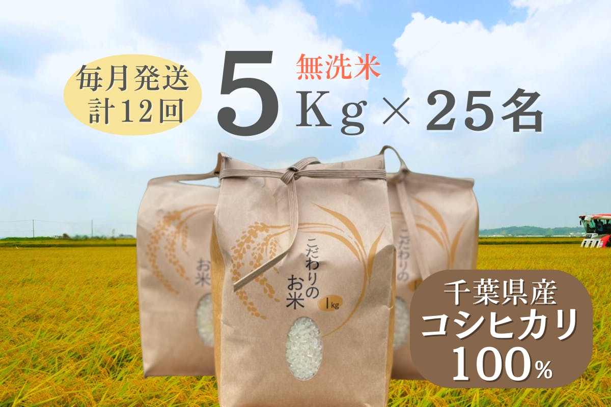 (1)無洗米精米コシヒカリ 毎月5キロ×12カ月