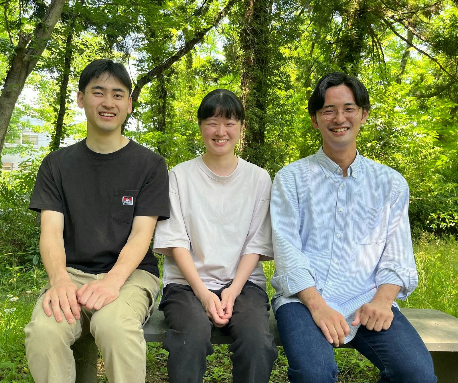 Agroforestry Lab(アグロフォレストリー・ラボ)を立ち上げた、鴫原宏一朗(しぎはらこういちろう、東北大学大学院農学研究科博士課程2年)、前野めぐる(東北大学農学部4年)、大槻佳輝(おおつきよしき、東北大学大学院情報科学研究科修士1年)と申します!