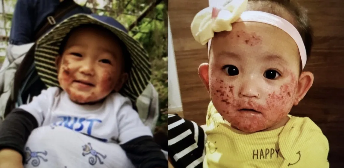 赤ちゃんのころは、放っておくとすぐ皮膚を掻きむしり血だらけになってしまうため、片時も目を離せません。